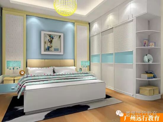 对于室内设计来说,现代人都钟情于简约而自然,最好还兼顾实用性的卧室,所以在设计这种卧室时,也喜欢采用一些简单又具时尚性的室内设计。这样,就会设计出一种小清新的卧室,下面是广州室内设计培训专业学校-番禺新川教育2014年室内设计培训教案中的几款卧室设计小清新类型的效果图: