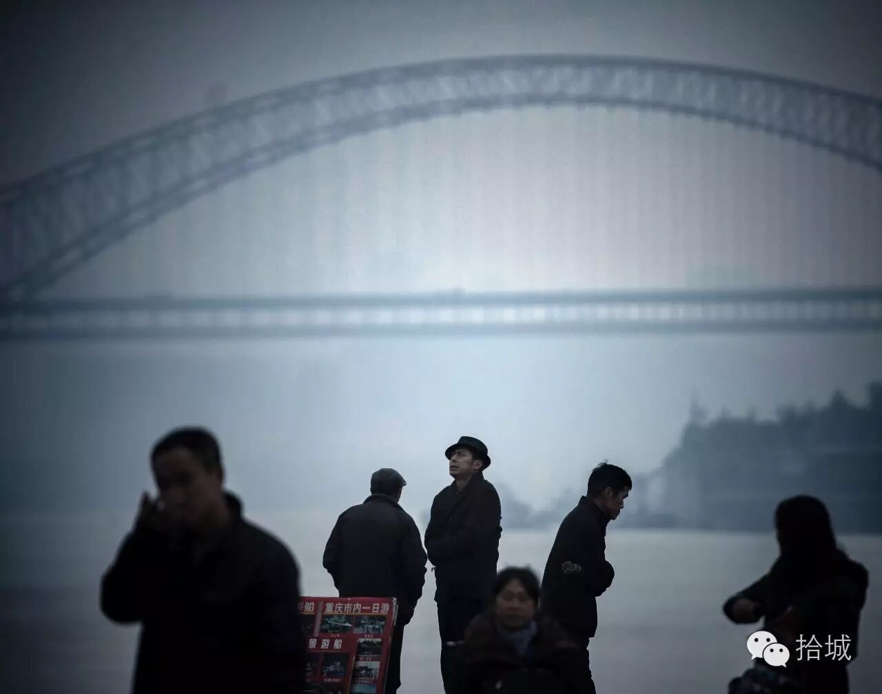重庆-2016年11月29日,朝天门码头,缩手缩脚的游客。 拾城 崔力