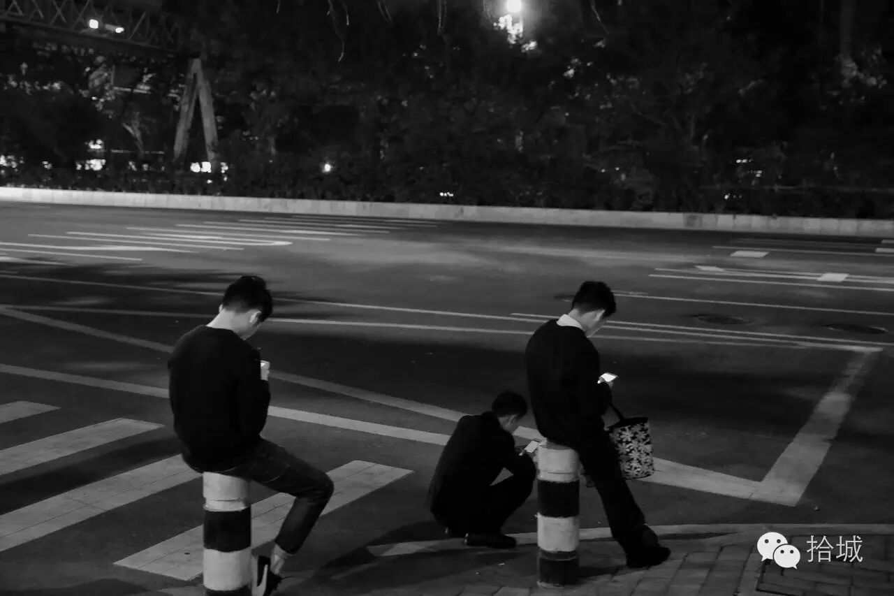 广州-2016年12月2日,广州大道中289号门口,三名男子玩手机打发等车的时间。 拾城 黎湛均