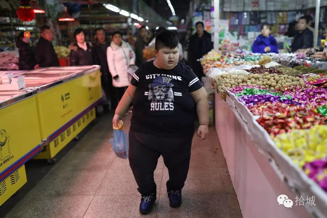 长春-2016年11月25日,当日气温零下10摄氏度,11岁减肥男孩李航穿着单衣逛农贸市场。 拾城 田卫涛