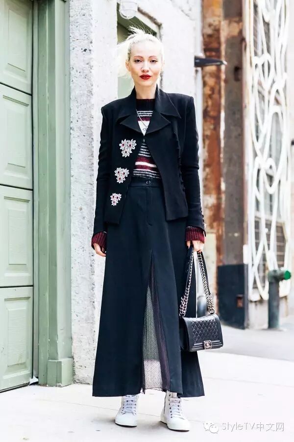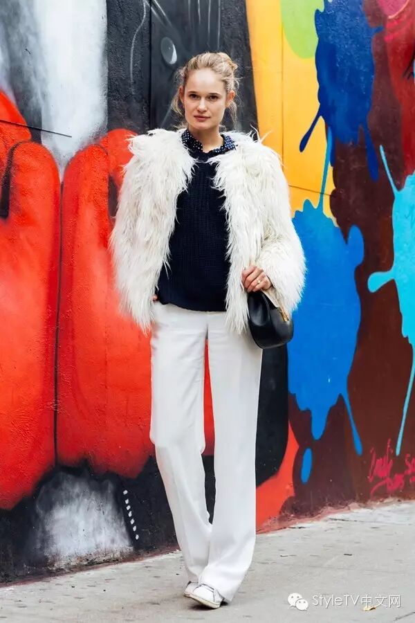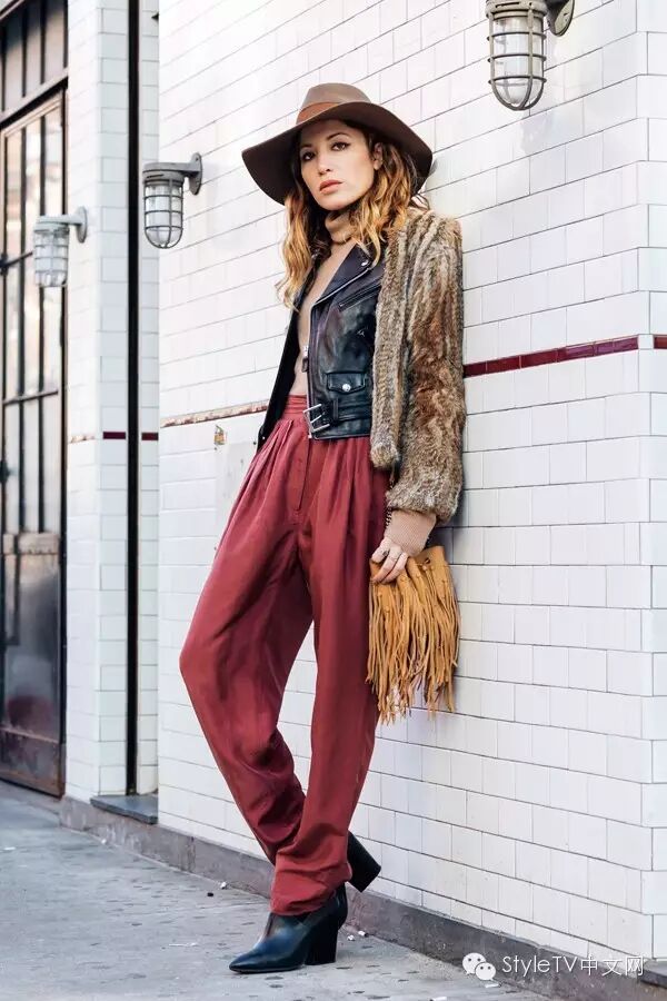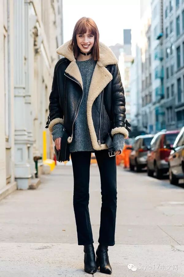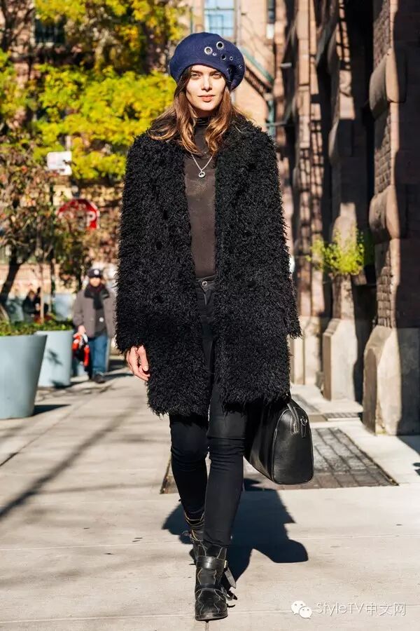 纽约的姑娘们玩起休闲mix最在行,基本上大都选择仿皮草外套或者长款风衣,内搭机车外套或者牛仔外套一定是这个冬天必须学会的搭配技能,如果想要整身看上去有些亮点,可以尝试用用红色或者橘色系,哪怕是用在包包上,也会给人留下温暖的印象。