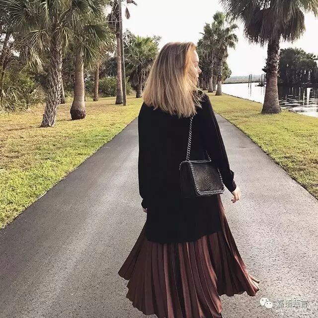 随便一搜还出来上面这一张。所以,这条裙子其实可以穿四季,天气再冷一点可以搭在大衣里面,也不错。