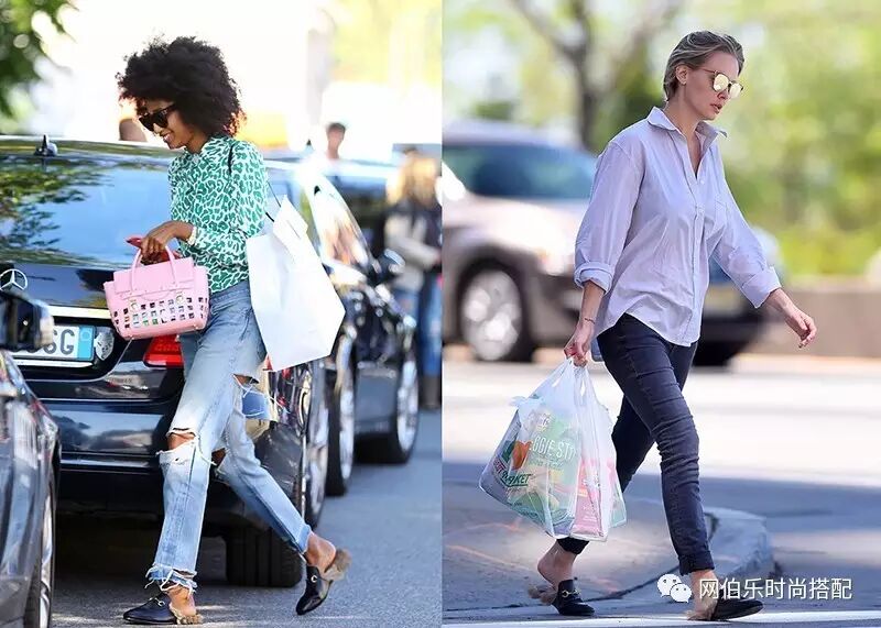 ▲就拿Gucci火爆到发烧的Princetown真皮拖鞋来说,搭配破洞牛仔裤是率性洒脱,而搭配基础小脚牛仔裤,反倒能透出一丝居家感。同样是“衬衣X牛仔裤”,不仅能表现出不同风格,而且丝毫不冲突,千万别再觉得毛毛拖鞋难hold咯!