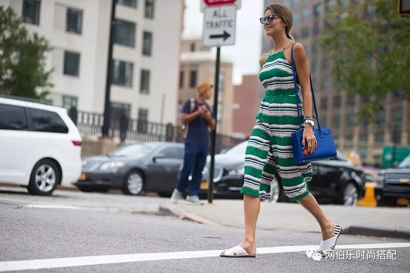 不论是吊带条纹,还是牛仔工装,宽松的裤腿搭配上浅口的拖鞋,露出纤细骨干的脚踝,能不显瘦?