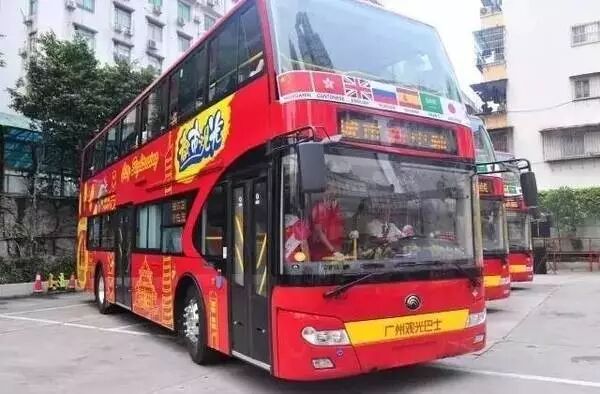 这些观光巴士以红色为主色,车身绘有小蛮腰、中山纪念堂等地标景点及“都市观光”等字样。目前,观光巴士共推出城市新中轴线(黄线)、千年古城线(蓝线)、西关风情线(蓝线)等3条线路。