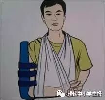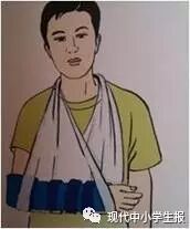 手臂骨折,可用布条、绳子等悬吊并固定在胸前。