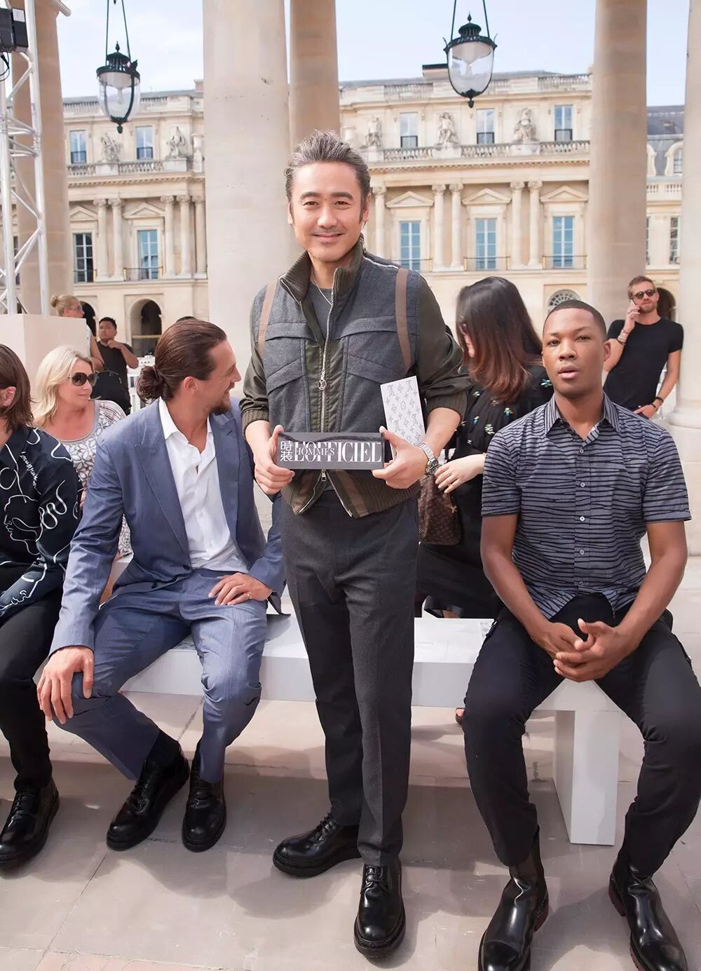 第一潮叔吴秀波受 Louis Vuitton 之邀出席巴黎男装周观看品牌时尚大秀,此次波叔一改往日的儒雅形象,他没有选择正装,而是以一身较为休闲洒脱的造型亮相,夹克的配色和版型都很有设计感,简单且利落。