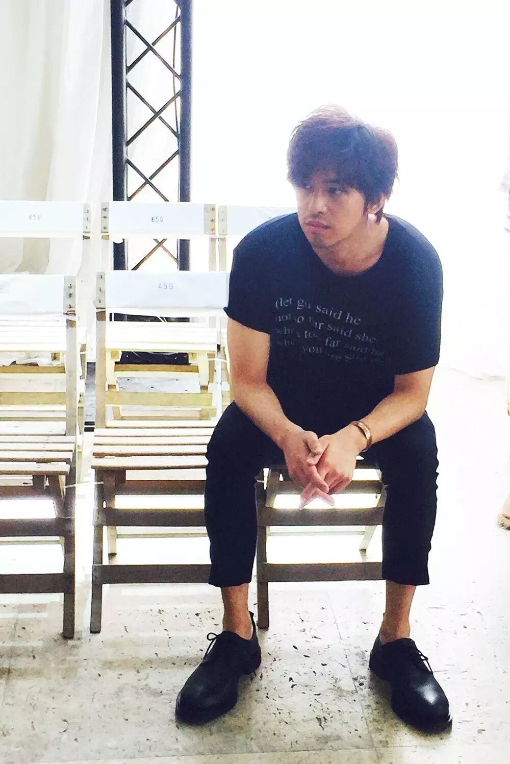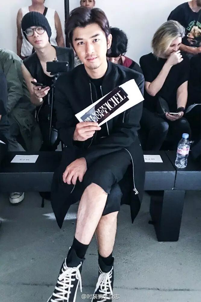 国民暖男陈柏霖亮相 Ann Demeulemeester 和 Rick Owens 品牌秀场看秀。白色印花 T 恤外搭飞行员长款风衣,七分裤,潮范十足的 Look 透露不羁的文艺气质。即使只是一件黑色字母半袖,也是被他搭配的很舒服又不觉得随便。