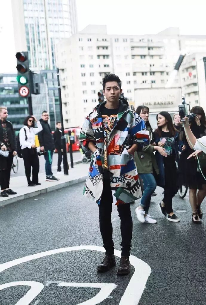 魏晨作为唯一受邀中国艺人亮相 2017 伦敦春夏男装周 KTZ 品牌秀场。廓形印花风衣丰富图形以及撞色元素相互作用,勾勒出俊朗又率性的气质。雨天拦不住型男的潮,彩色带帽风衣应付英伦的阴郁,完美。