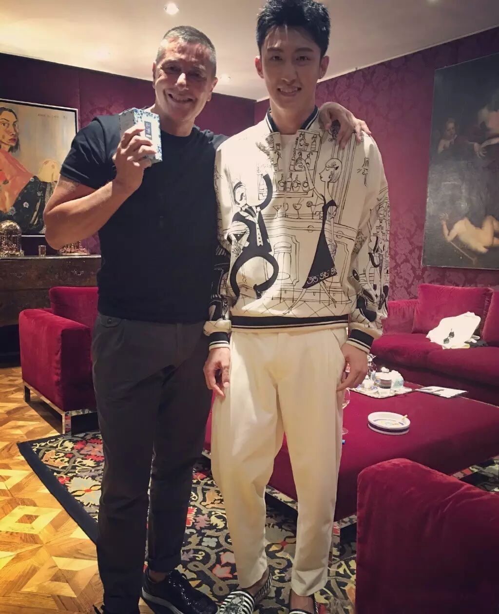 刘恺威身穿 Marni 2016 秋冬系列红色西装和 Etro 暗紫色印花西装优雅现身品牌秀场。除此,他还接连亮相 Les Hommes、Septwolvers 四场大秀,是本季米兰出现率最高的明星。从个性的图腾卫衣到暗紫色的印花西服套装,全都驾驭的游刃有余。