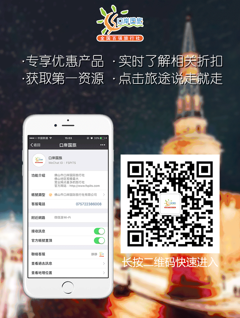 咨询在线客服:22386008,或联系口岸国旅各大营业部