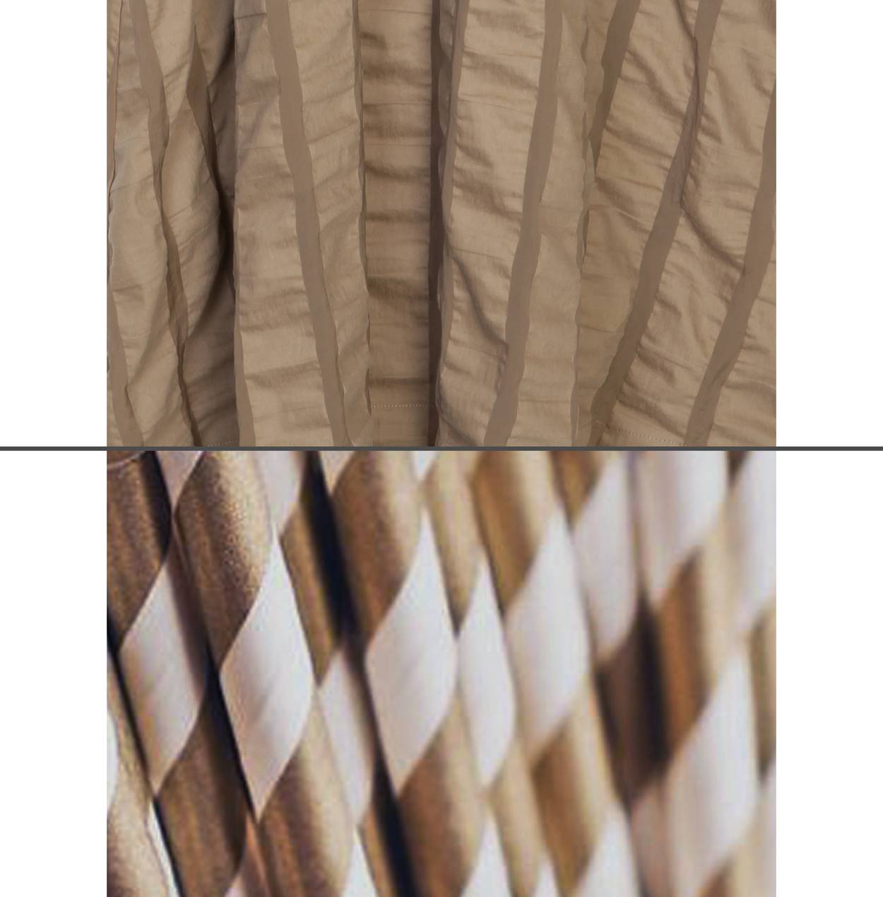 锦纶纱做经纱,纬纱用棉纱与锦纶纱横条提花,强烈的材质对照使面料变化条纹效果更加强烈,经熨烫后棉纶部分收缩,产生更为立体的肌理效果,棉花盛产地土耳其生产,手感挺括滑爽。