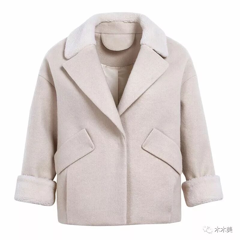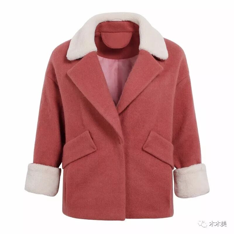 秋冬新款精品女装撞色羊羔毛短款呢大衣淑女毛呢外套女