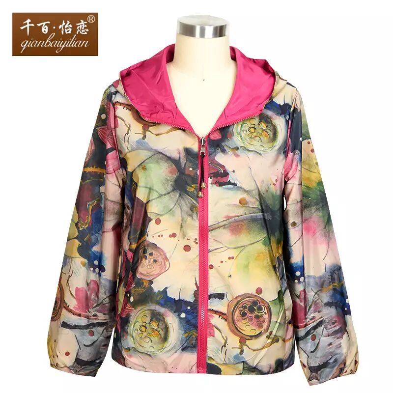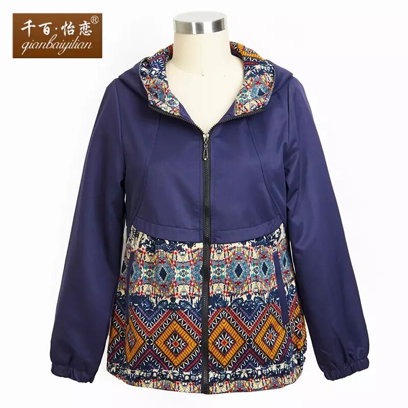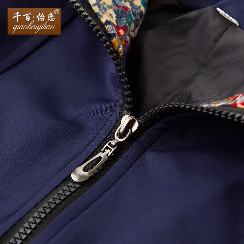 千百怡恋中老年女装春秋长袖外套新款妈妈秋装民族风薄款连帽上衣