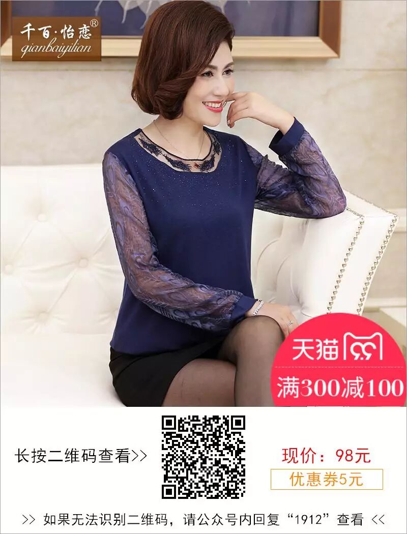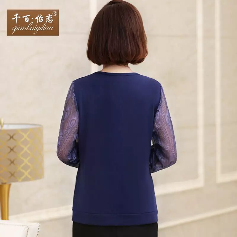 千百怡恋妈妈秋装长袖T恤新款40-50岁中年女装春秋打底衫蕾丝上衣