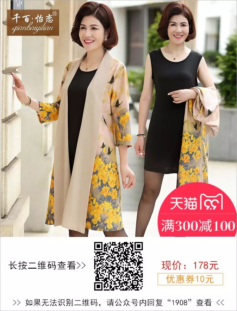 千百怡恋中老年女装春秋连衣裙新款妈妈秋装七分袖披肩裙子两件套