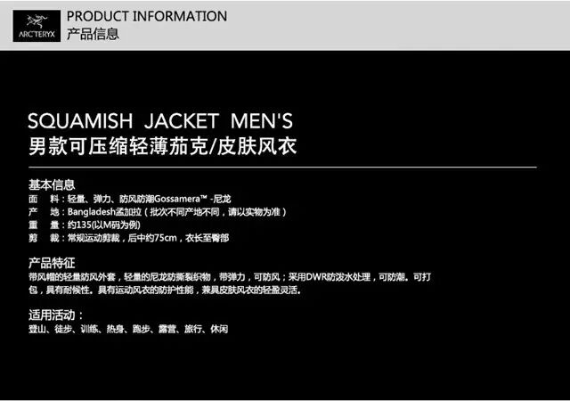 4.胸前单个口袋;可压缩收纳皮肤风衣。