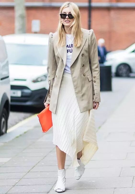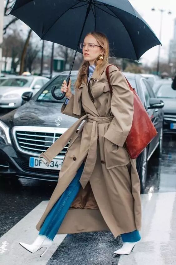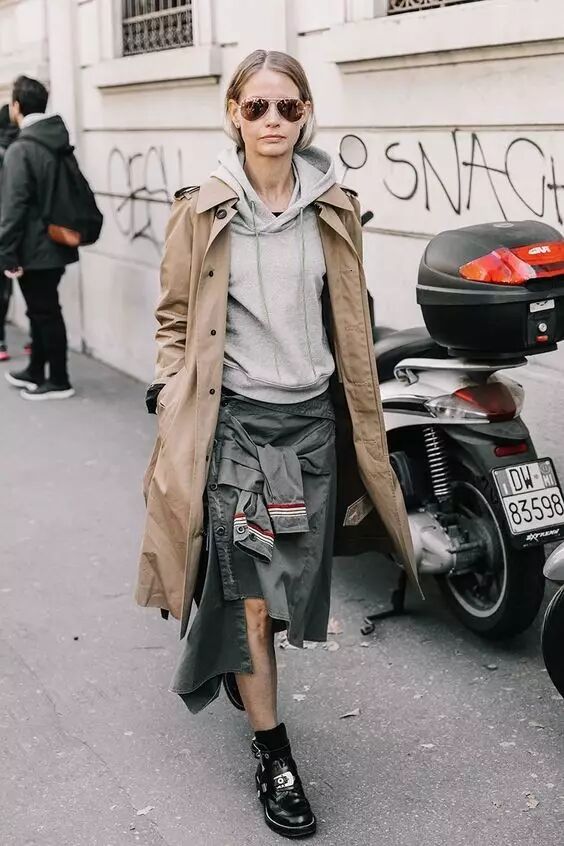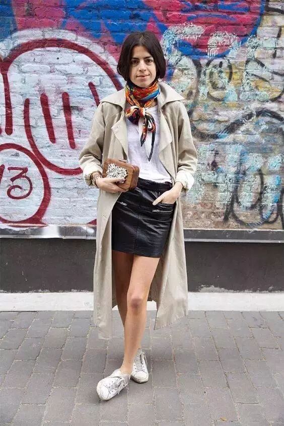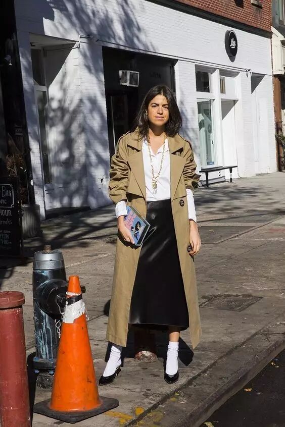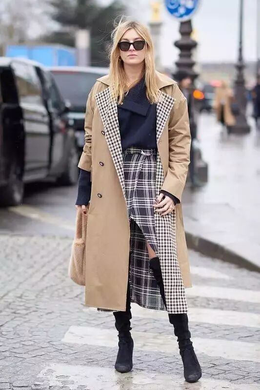 风衣搭配半裙,既有裙子的柔美女人味,同时比连衣裙的搭配选择更多了一些,不管是小皮裙、牛仔裙、还是针织半裙,都能搭配出你想要的风格。