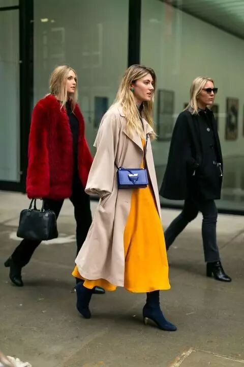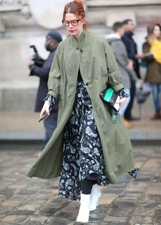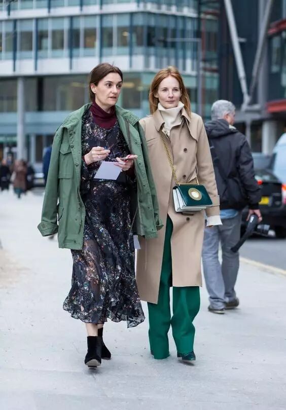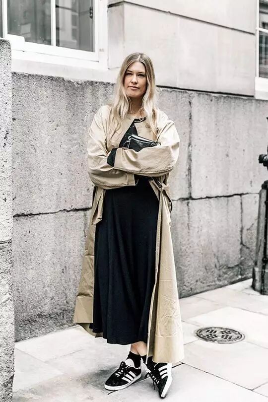 连衣裙风衣搭配短靴,真的是我认为秋季最美最酷的搭配之一。
