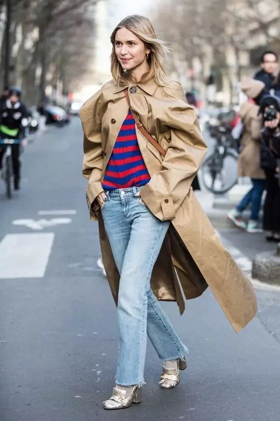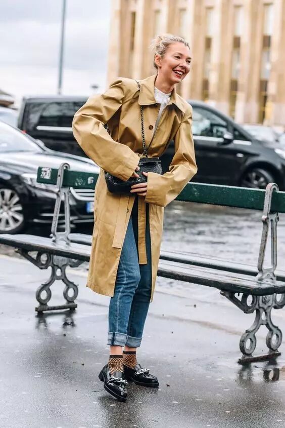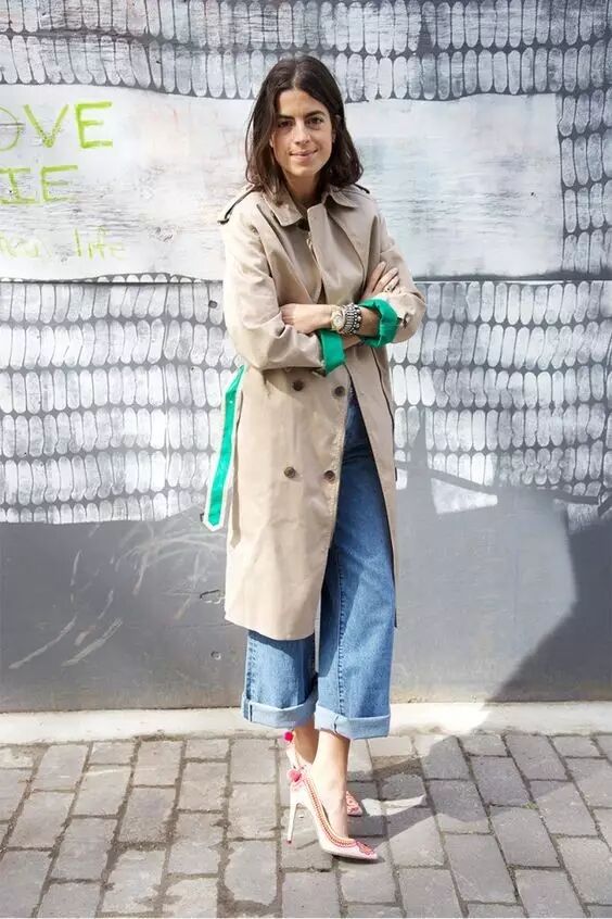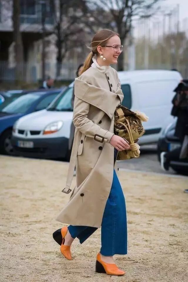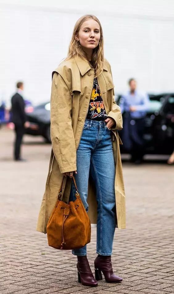 休闲帅气的牛仔裤搭配风衣,是最不出错的cp,蓝色和卡其色的碰撞也是足够的美丽。