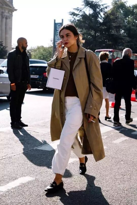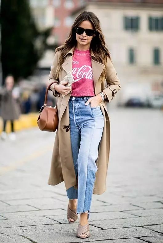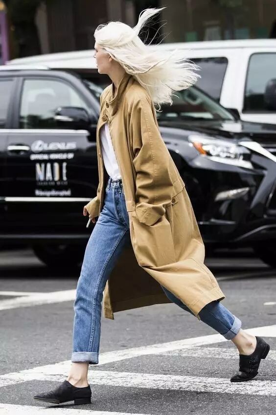 即使最简单的T恤牛仔,外搭风衣,就能凹出休闲随意又不失大气的造型。