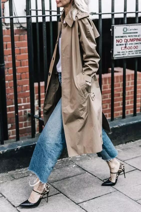 风衣+牛仔裤