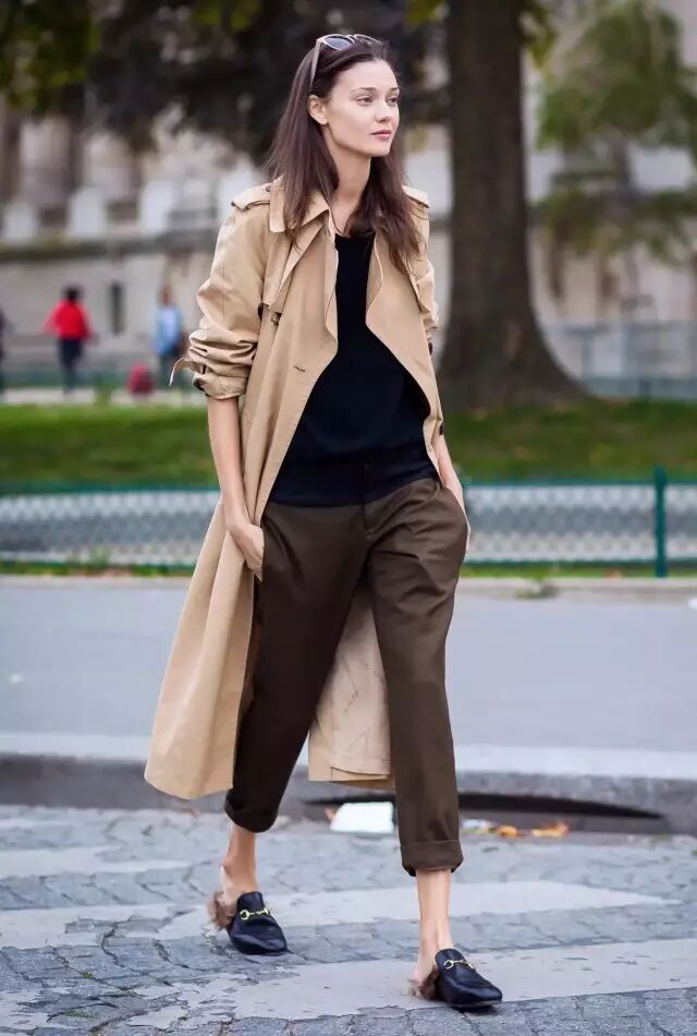 风衣和阔腿裤的组合那就是走路带风,大写的帅气拉风。