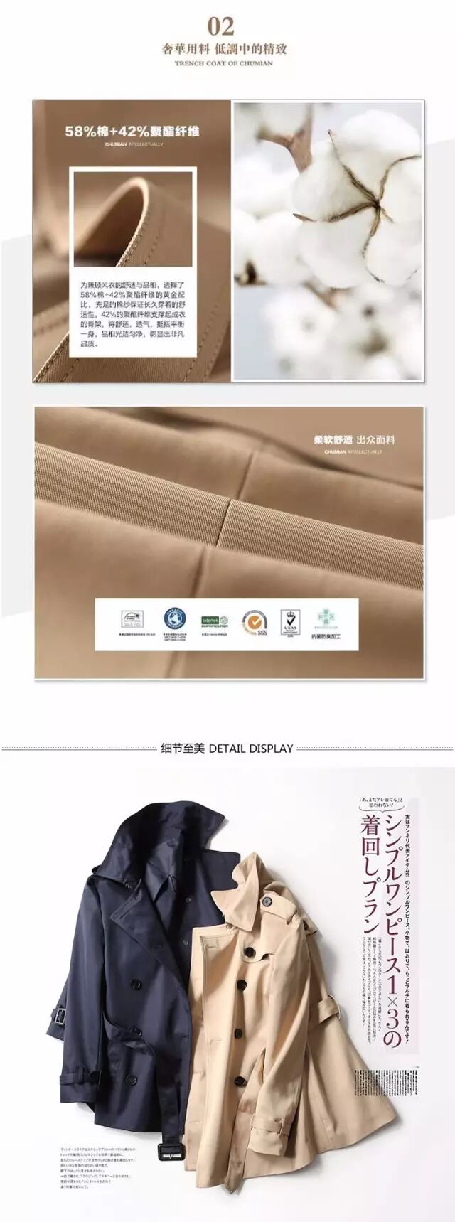 面料区别于往年的传统风衣料,采用了新型的高密细斜,