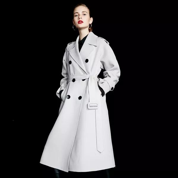 06 同样是帅气,浅灰色要显得庄重一点。如果说藏蓝色是学院气质的减龄,那么浅灰色就是职场上的稳重大方。双排扣加腰带再加肩章和翻领,让那些美丽的谣言都变成现实,成为职场女强人。