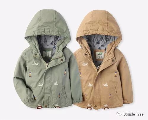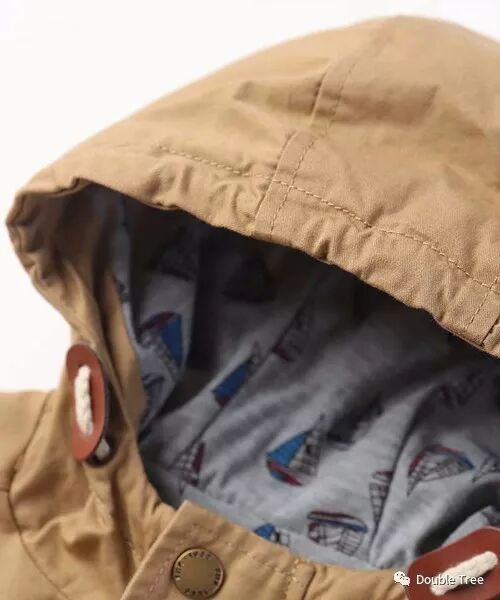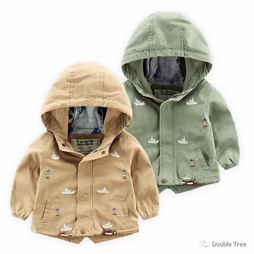 时尚帅气的连帽风衣,经典的连帽设计,抽绳可以调节大小。松紧适中的腕部,贴合宝宝手腕。斜插式的小口袋,方便置物。胸前的帆船刺绣图案,充满童趣。优质的内里全棉面料,满印的小帆船。宽松的下摆有抽绳,可以调节大小哦。两色可选,快带您的宝贝来店内试穿吧!