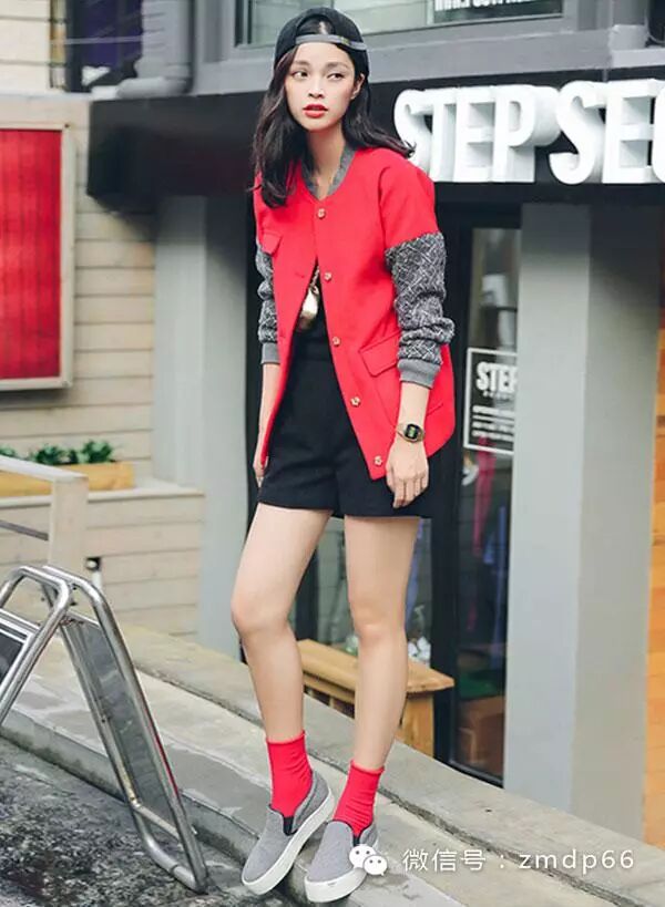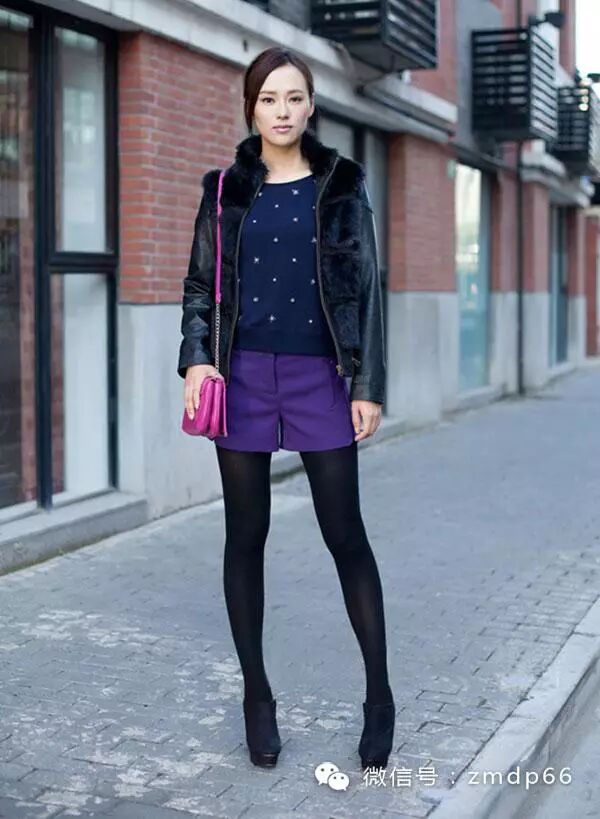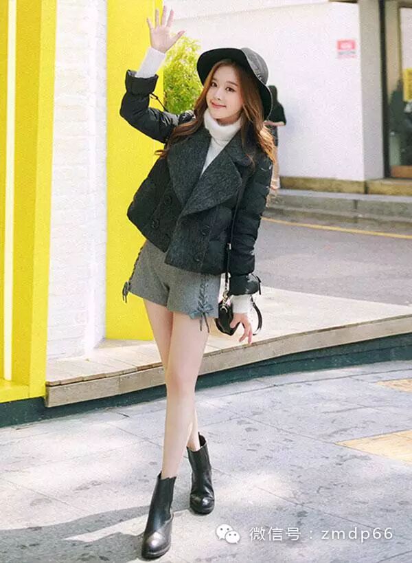 短装的呢子外套搭配灰色短裤,做为小个子女生的着装,可谓是经典中的模范,零失误又能扬长避短,但是如果腿粗的MM,这种搭配要慎之又慎了。