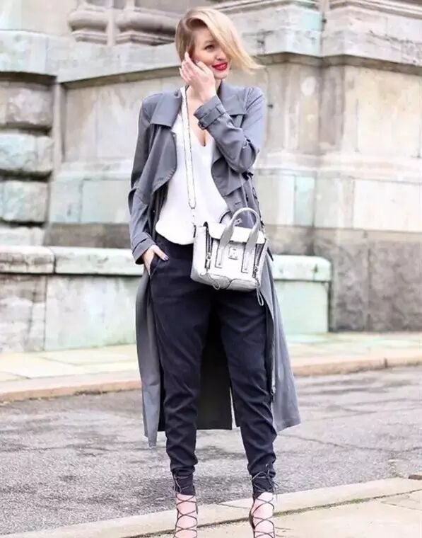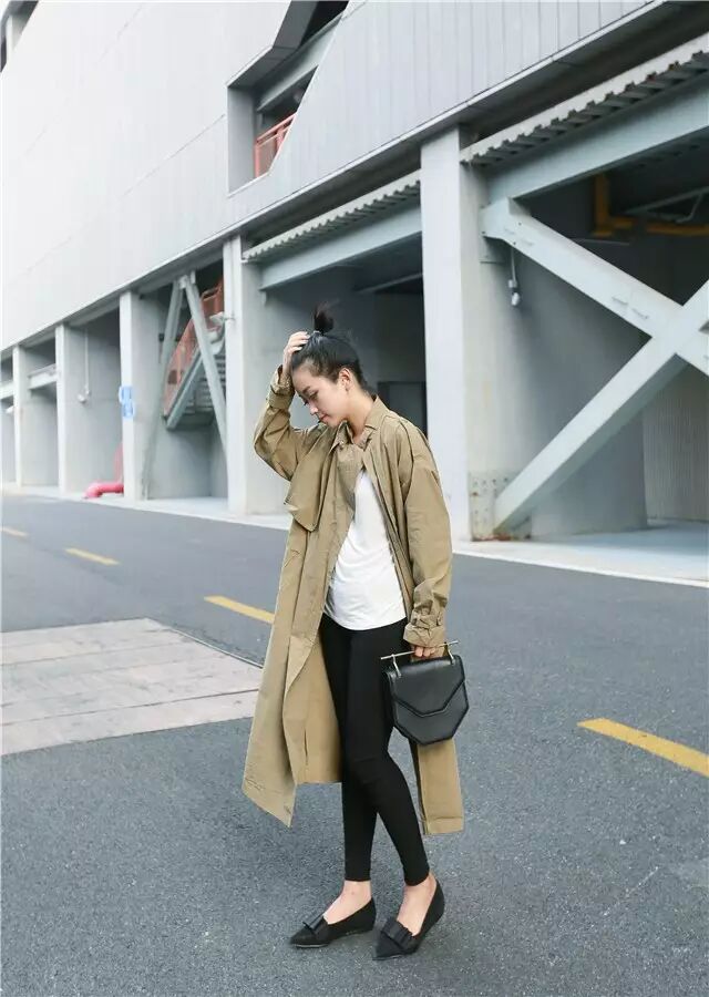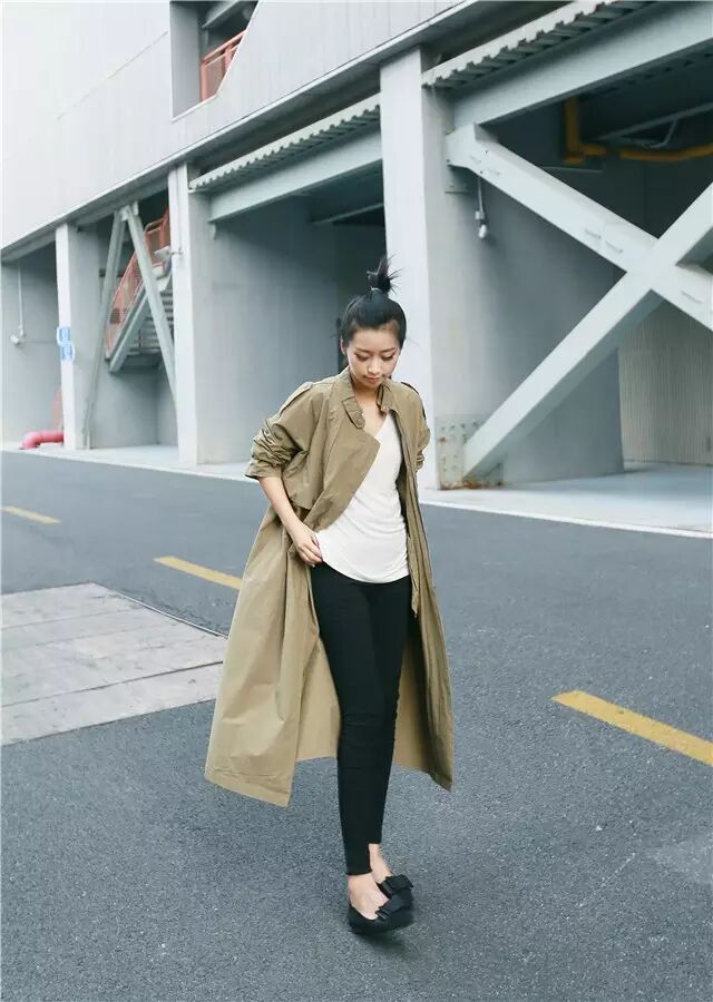 无论是正统的正装裤或是休闲的牛仔裤搭配风衣都能穿出干练清爽的感觉~