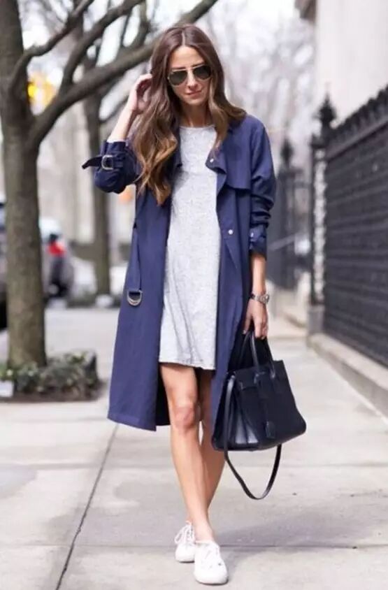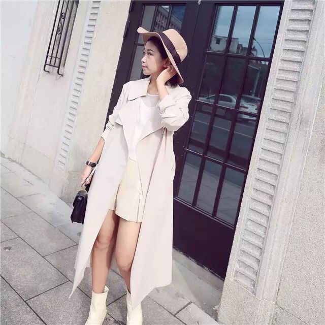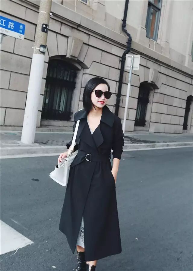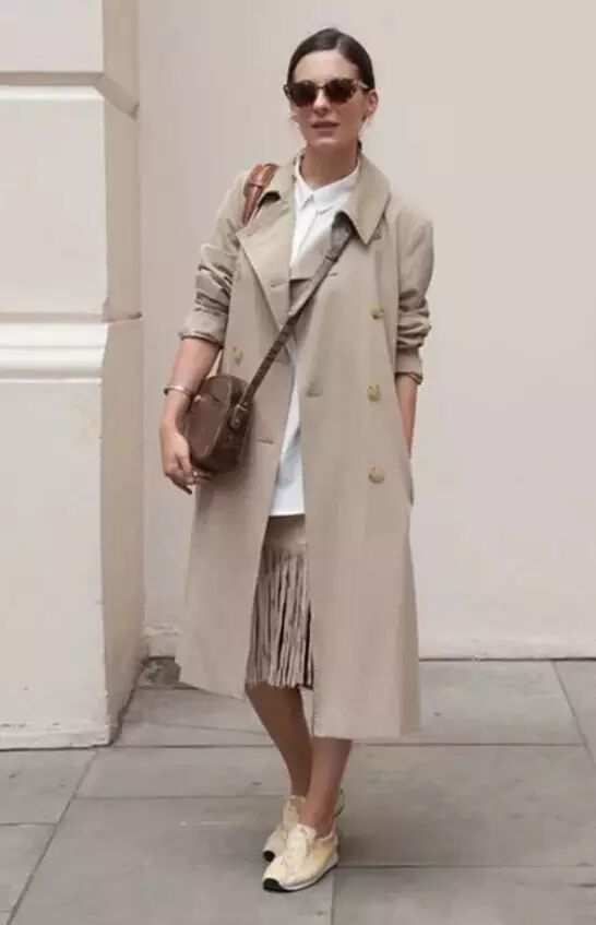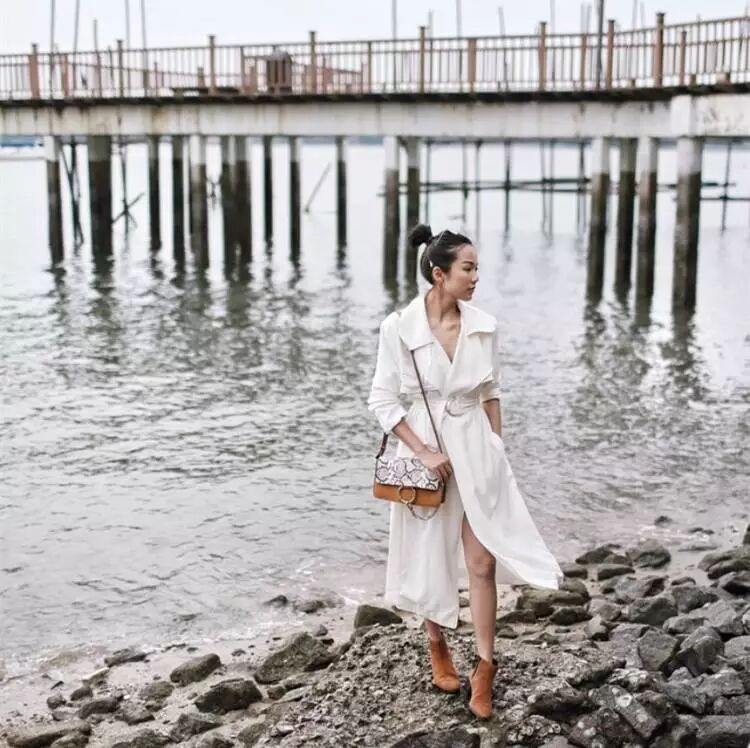 最省心搭配便是在风衣里内搭一件连衣裙或者直接作为风衣裙外穿~