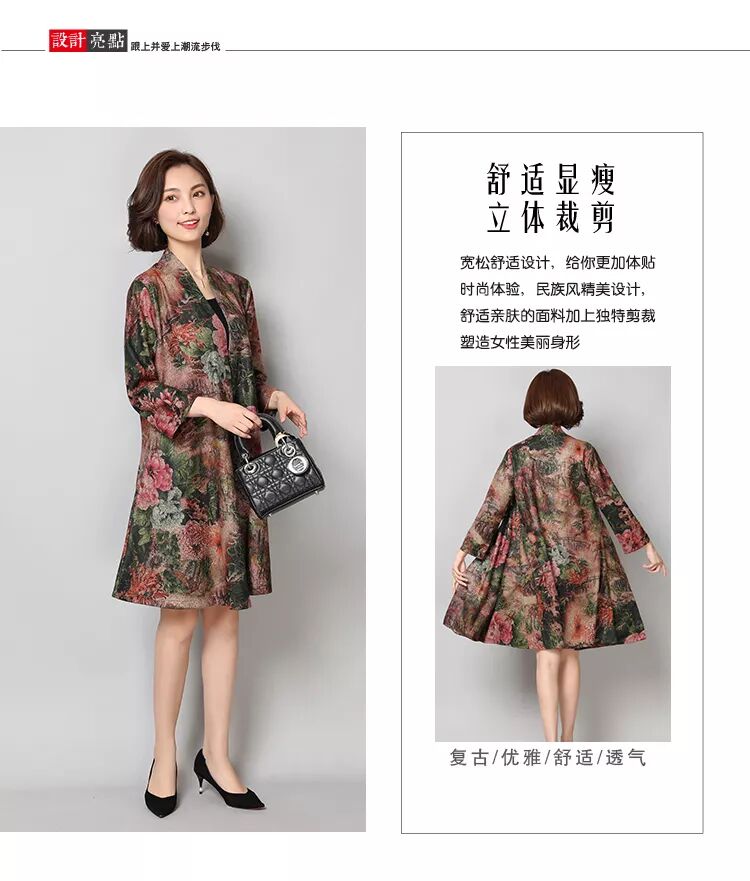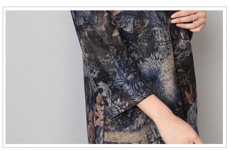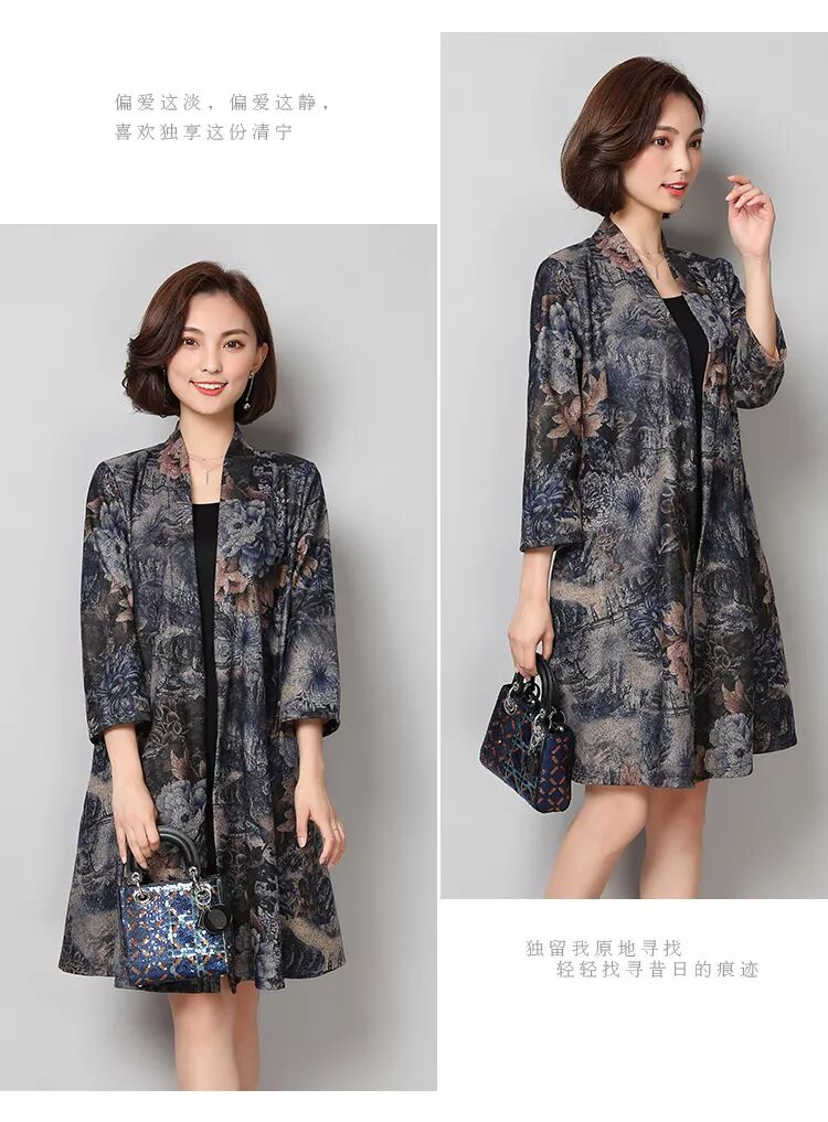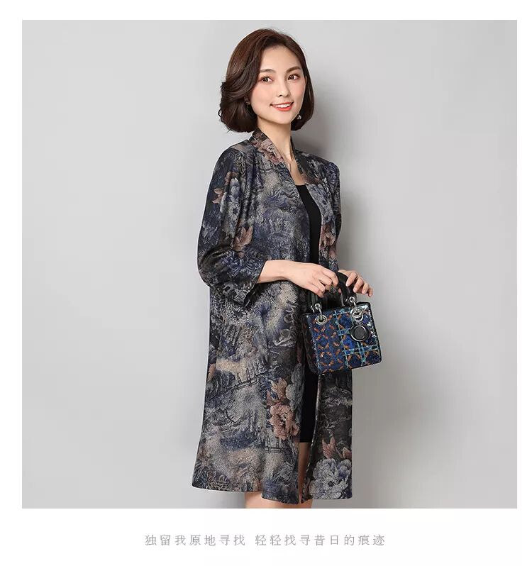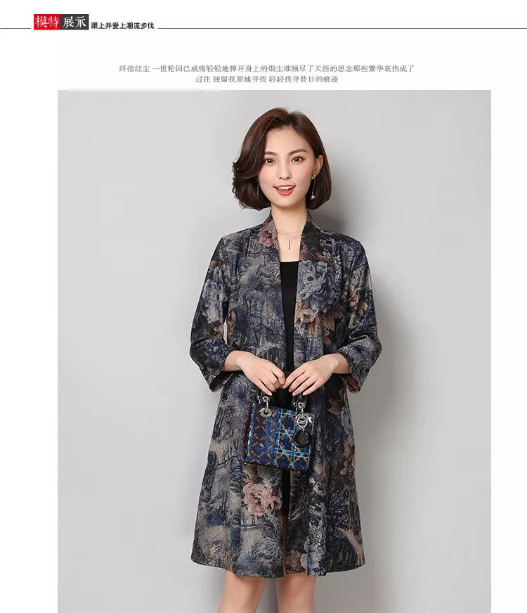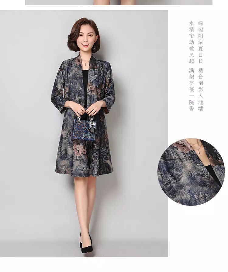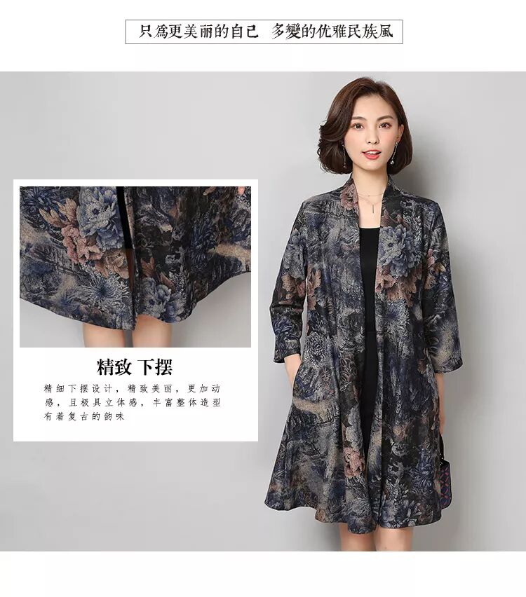 2017秋冬新款复古印花中长款加厚呢料宽松风衣外套大衣