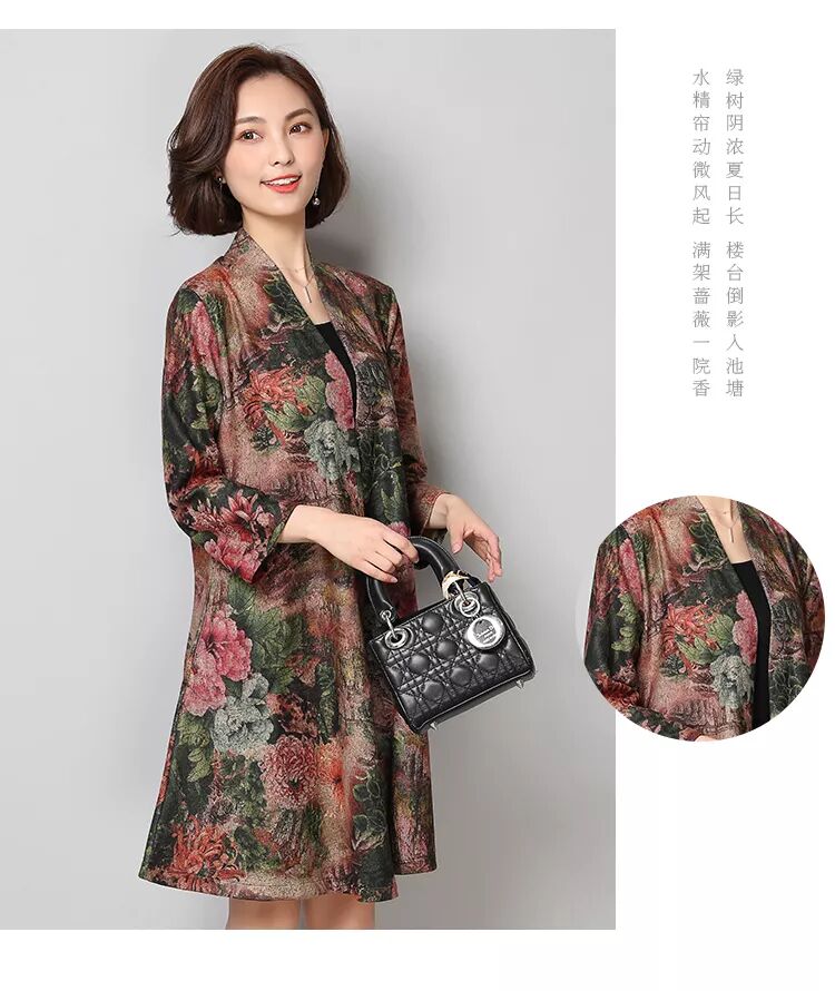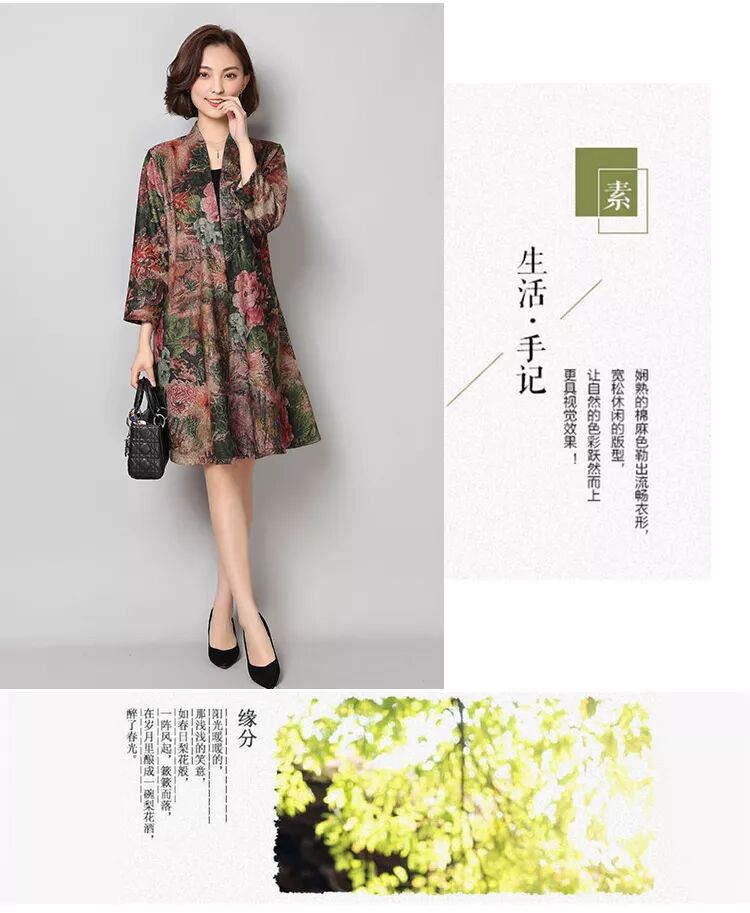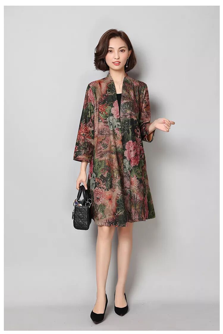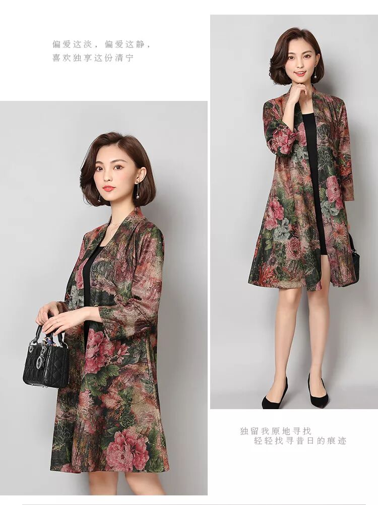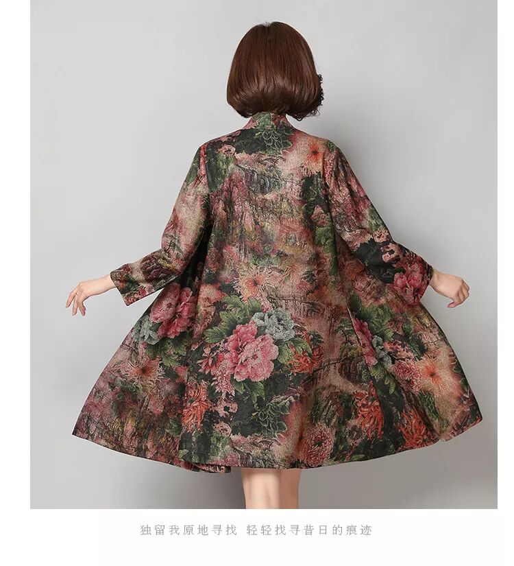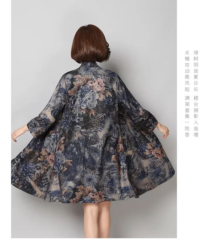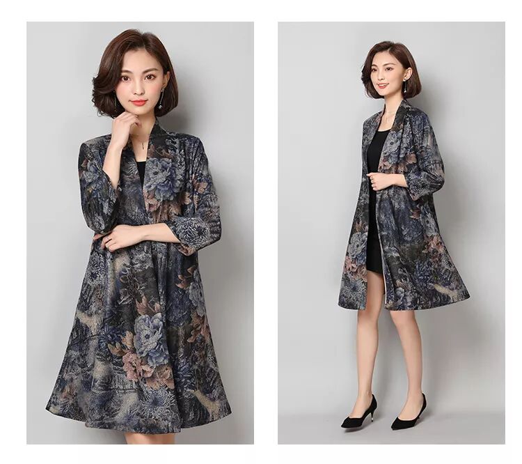 2017秋冬新款复古印花中长款加厚呢料宽松风衣外套大衣