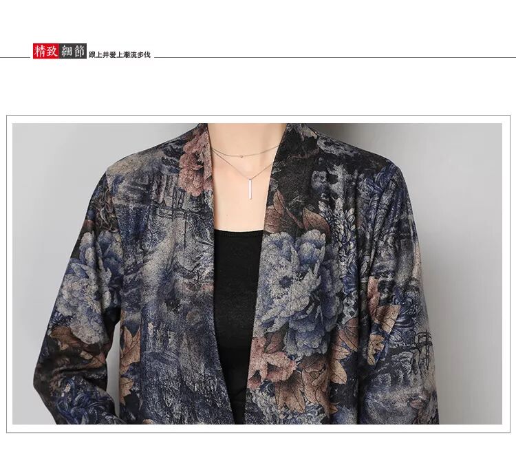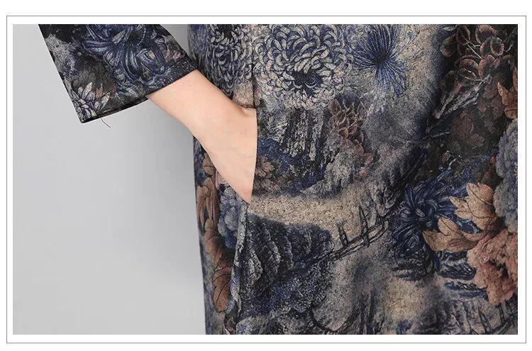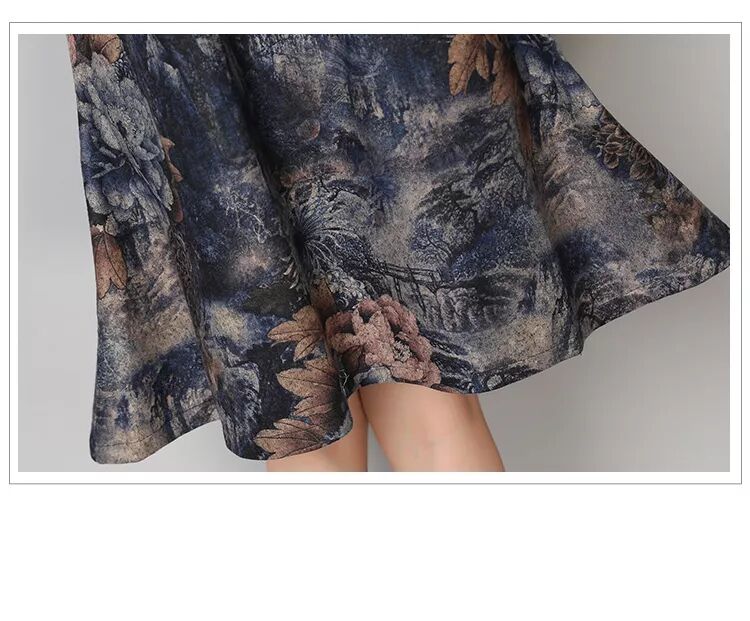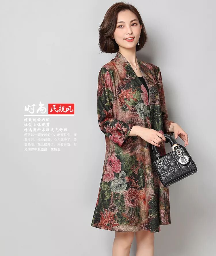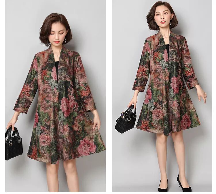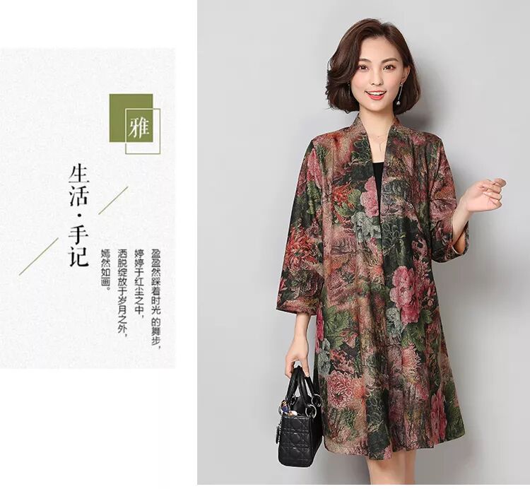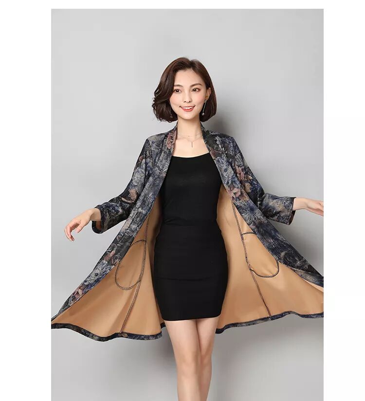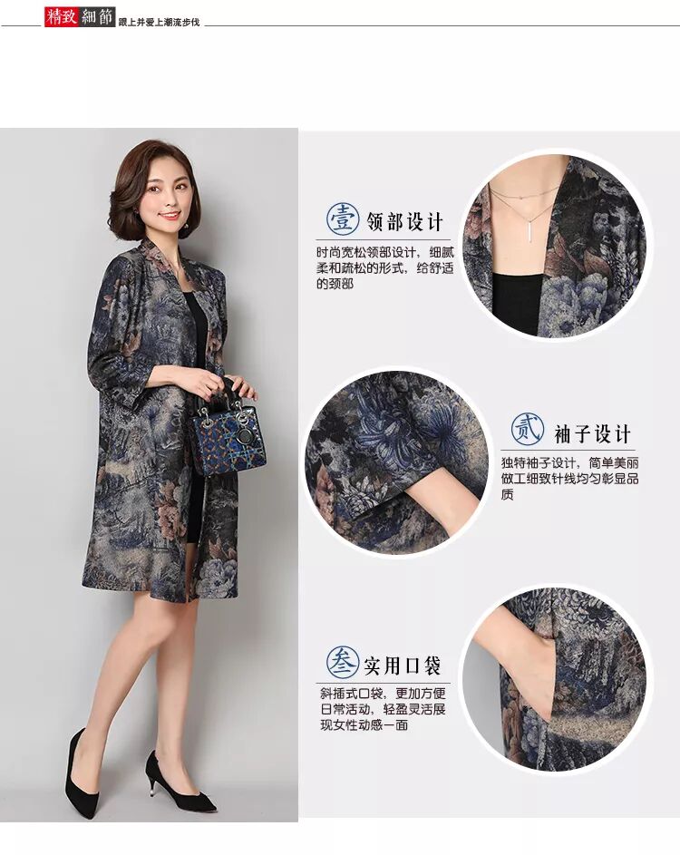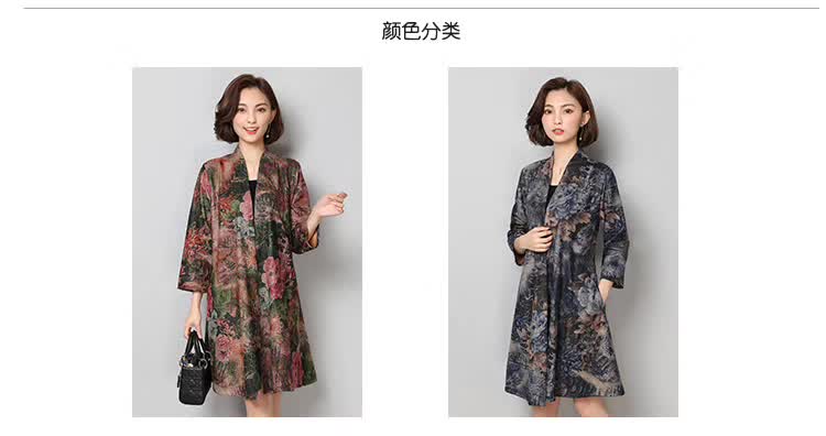 2017秋冬新款复古印花中长款加厚呢料宽松风衣外套大衣