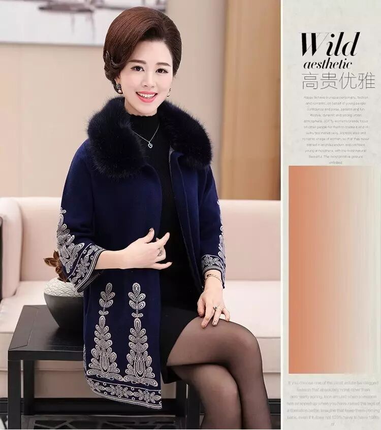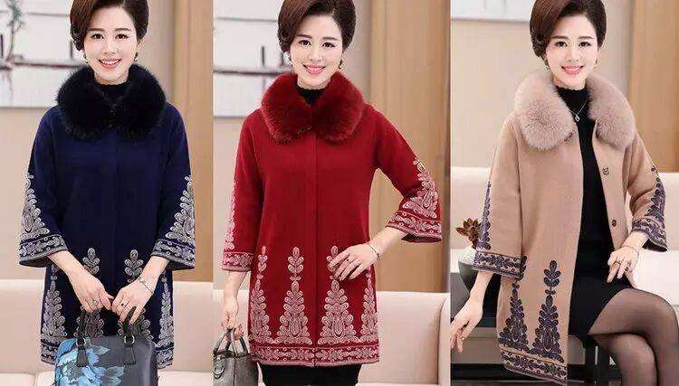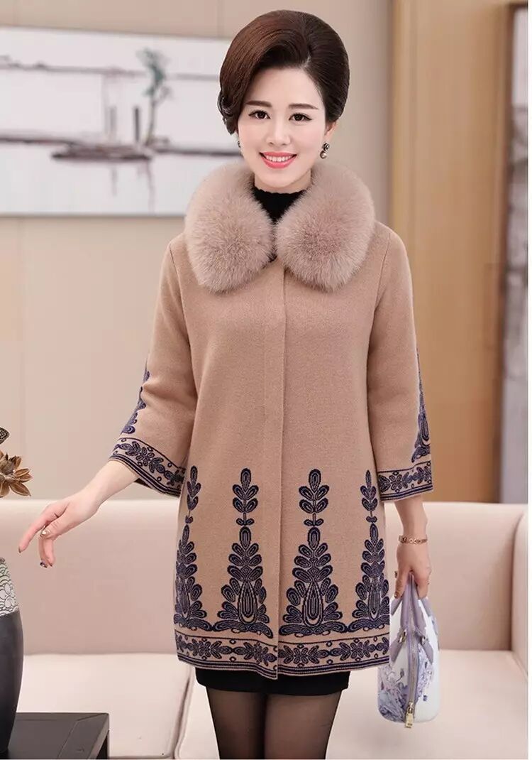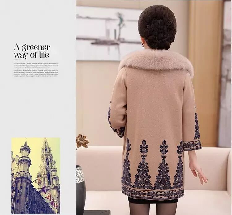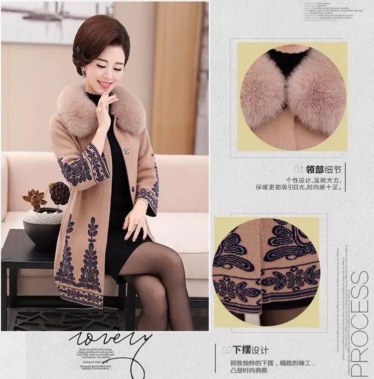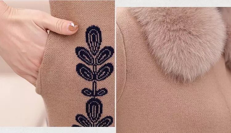 官方原价598元/件的 秋冬毛领大衣女式针织衫中长款修身韩版外套 (货号 6819)