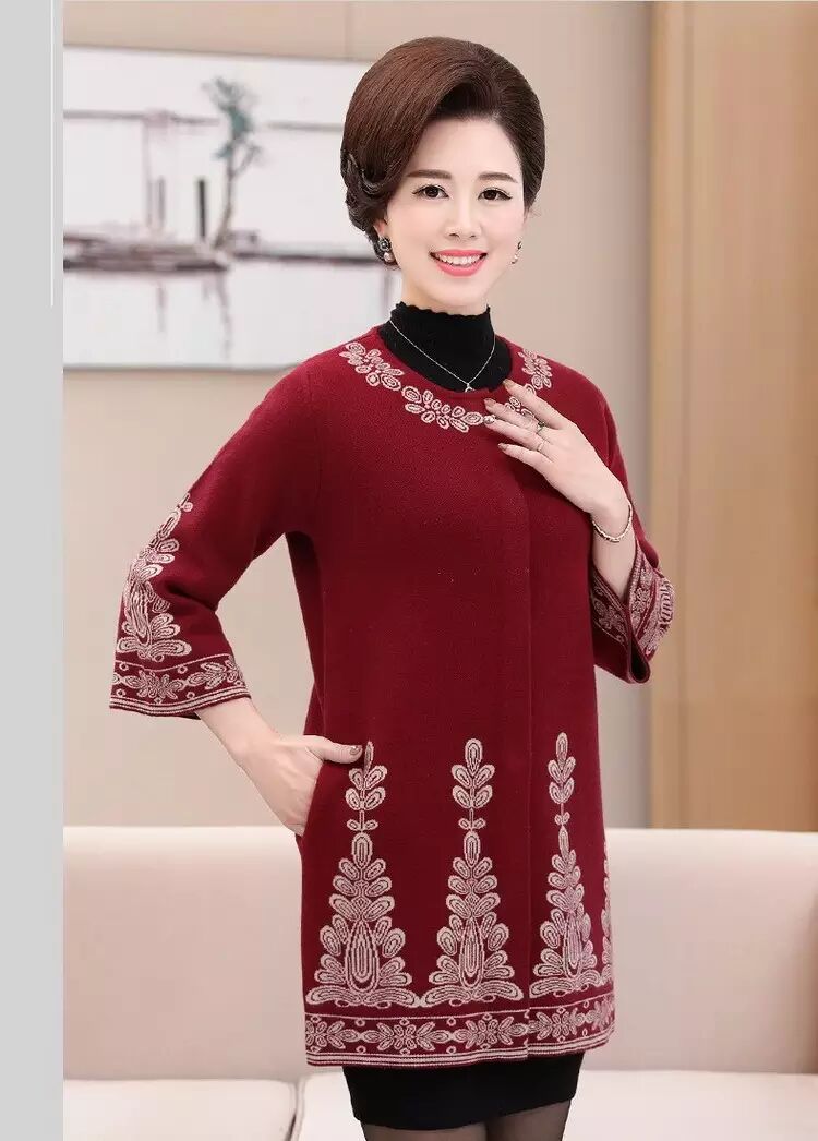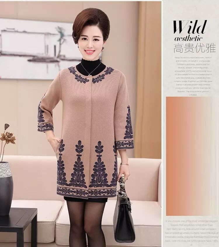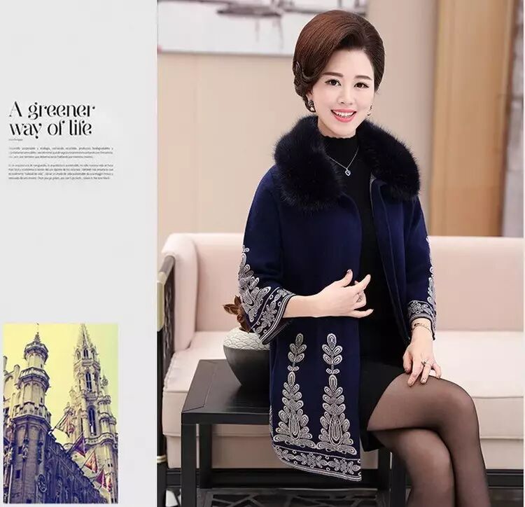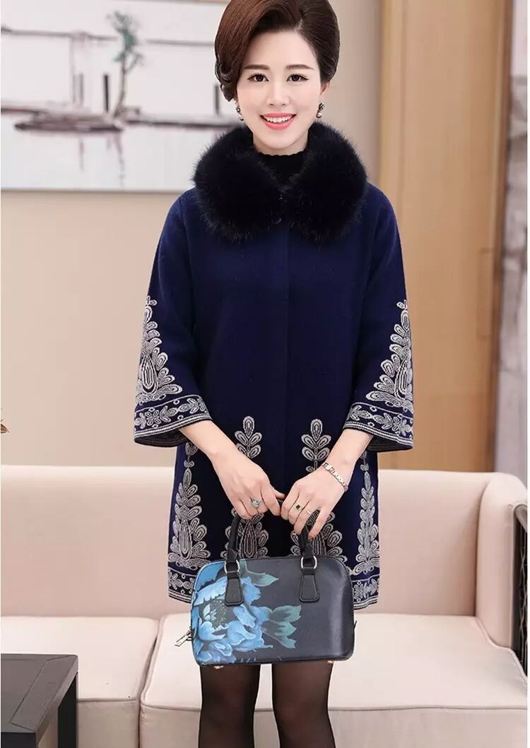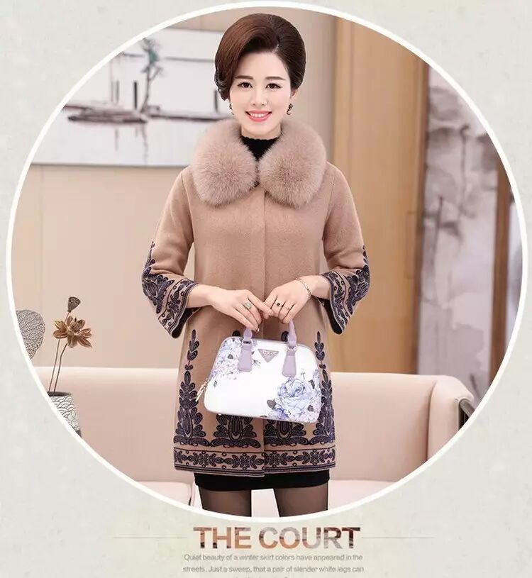 官方原价598元/件的 秋冬毛领大衣女式针织衫中长款修身韩版外套 (货号 6819)