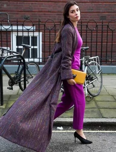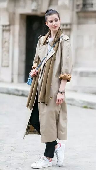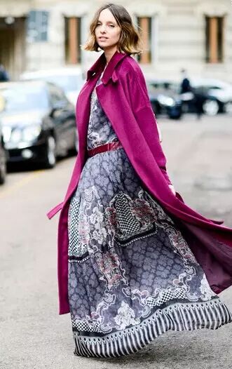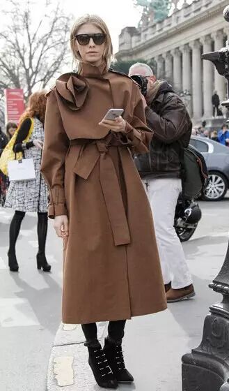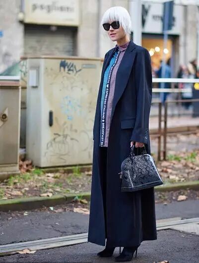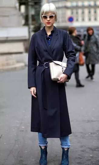 如果选择超长深色风衣,可以不系纽扣或腰带,呈现出内搭的彩色衬衫等单品,不会喧宾夺主。