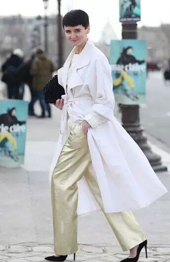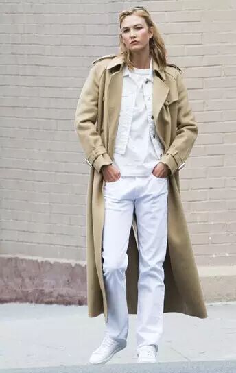 没有什么比一身白色裤装更酷的了,除非加一件驼色超长风衣,帅气的裤装辅以经典的驼色,既拉长身材比例又增添细节感。