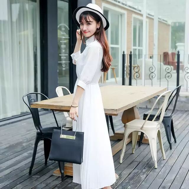 七分袖连衣裙,利落简约!长款很显瘦,具有不错的防晒效果!
