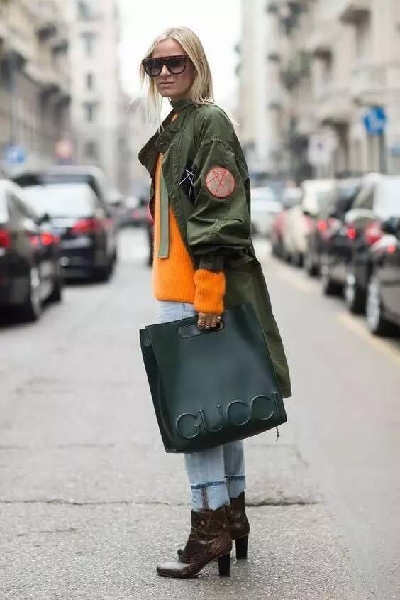 入秋了天朝的时髦精也对军绿色外套爱不释手