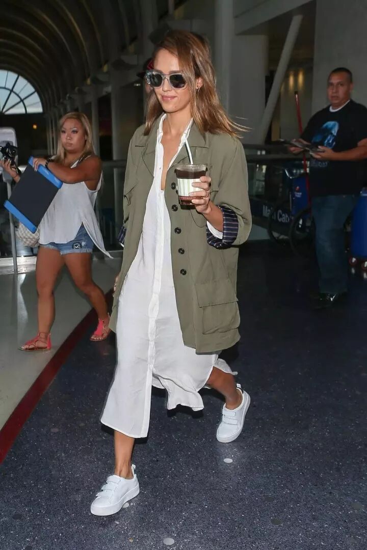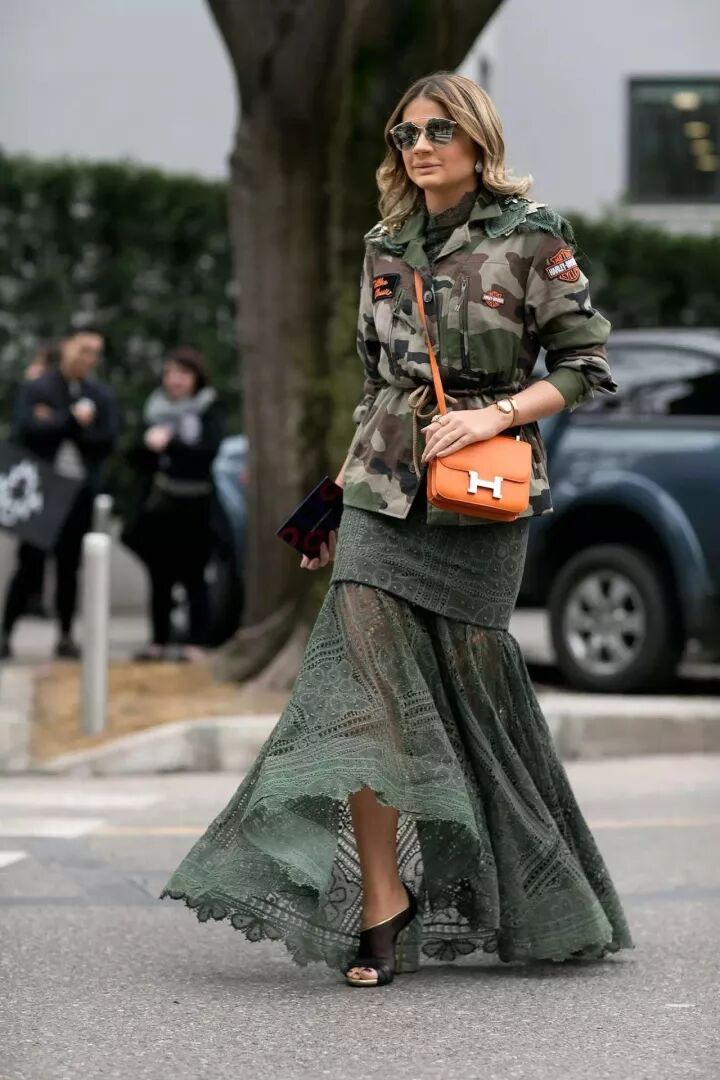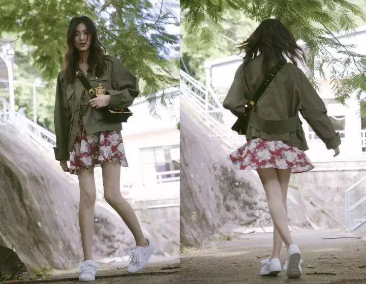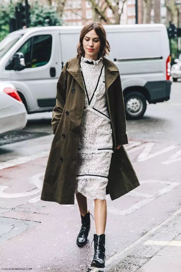 白色蕾丝裙用它来搭配军绿风衣更有层次