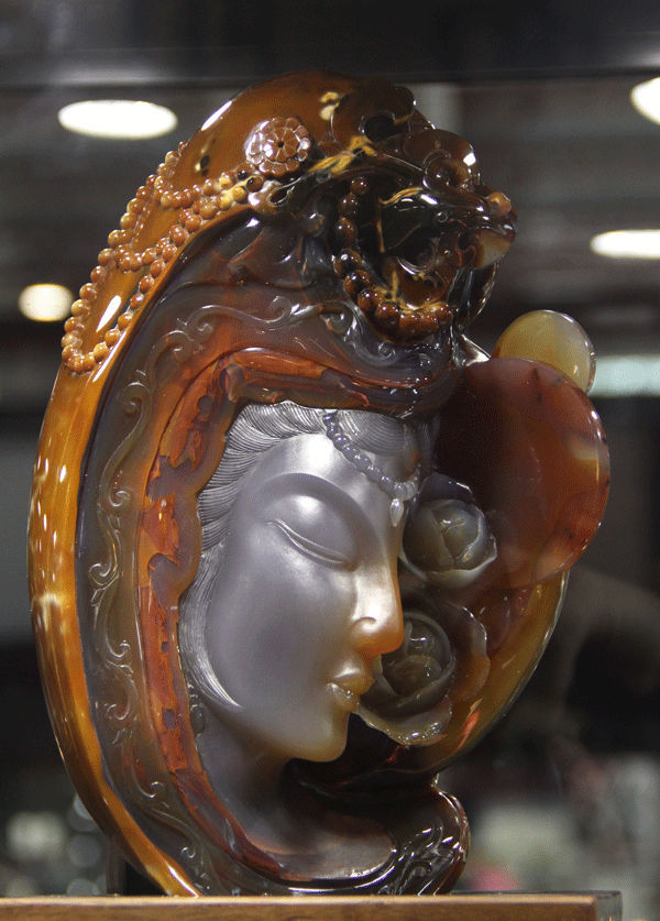 玉石经加工雕琢成为精美的工艺品,称为玉雕。工艺师在制作过程中,根据不同玉料的天然颜色和自然形状,经过精心设计、反复琢磨,才能把各种名贵的矿石(玉石)雕制成精美的工艺品。