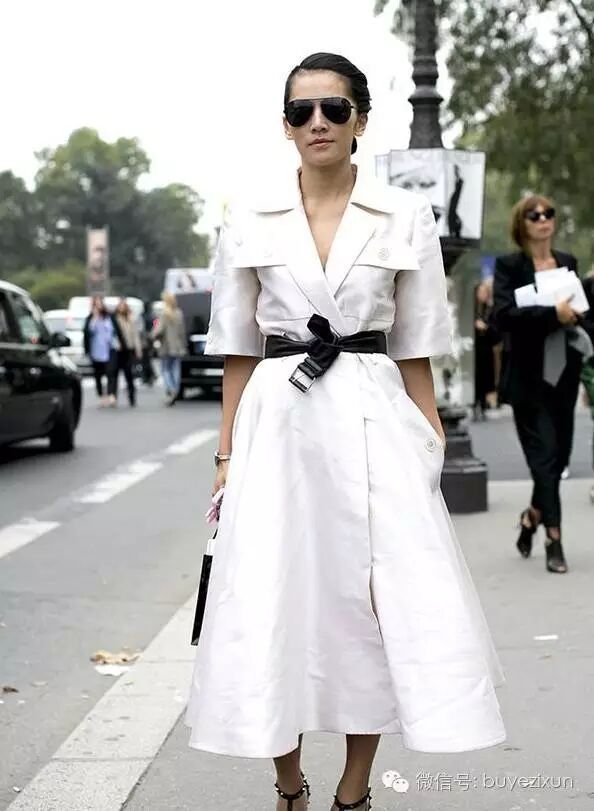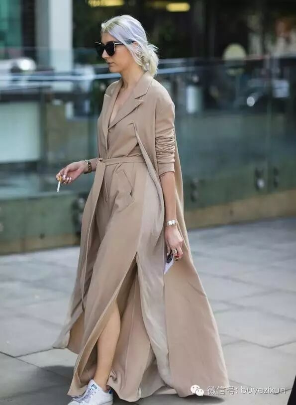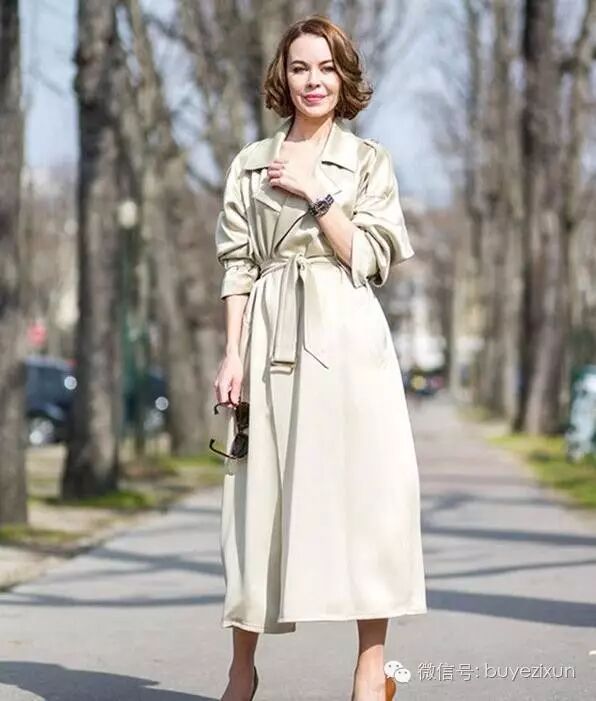 风衣当做连衣裙穿,没有什么不可以!只要你束起风衣的腰带就能变身裙装啦!腰带能把衣身束出A字廓形,显得腰细腿长特别时髦。风衣外套帅气干练,风衣裙绝对性感女人味十足,搭配一双高跟鞋分分钟变女神有木有!