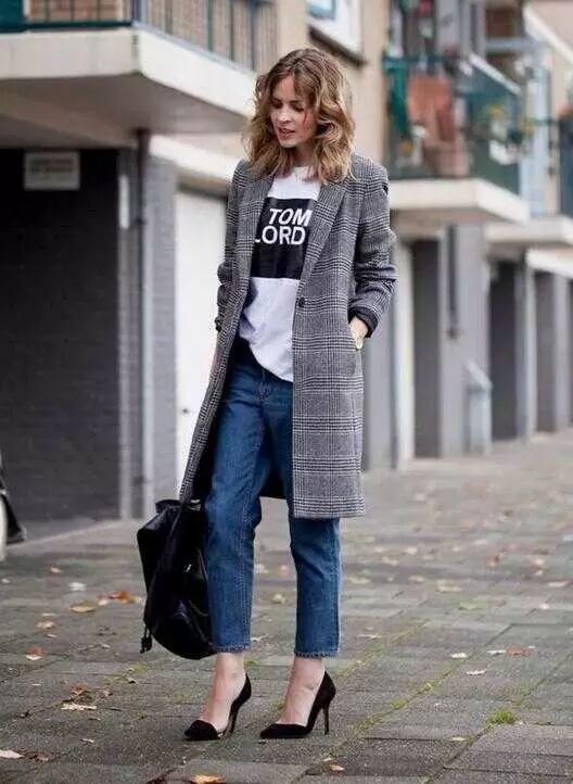 简单的一件T恤+牛仔裤+一双高跟鞋