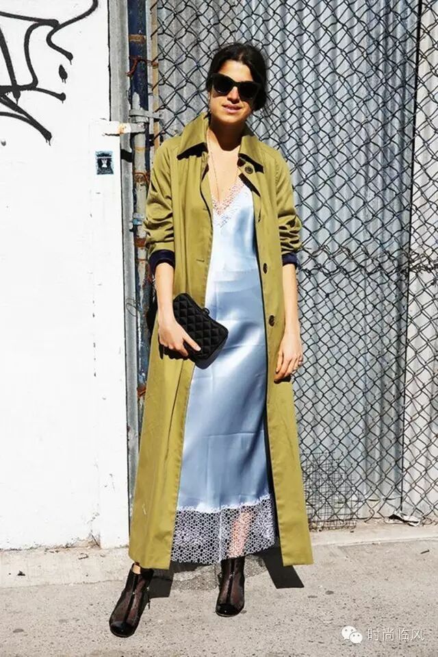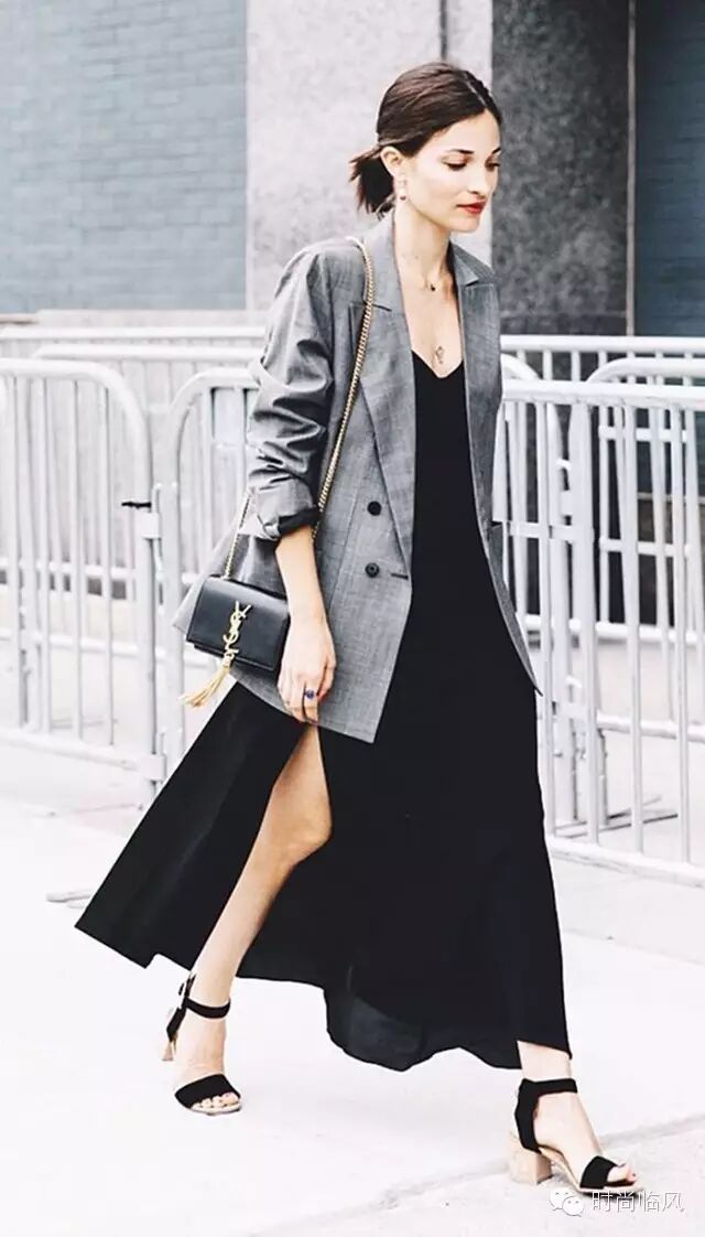西装外套或长款风衣是吊带裙最有趣的伴侣
