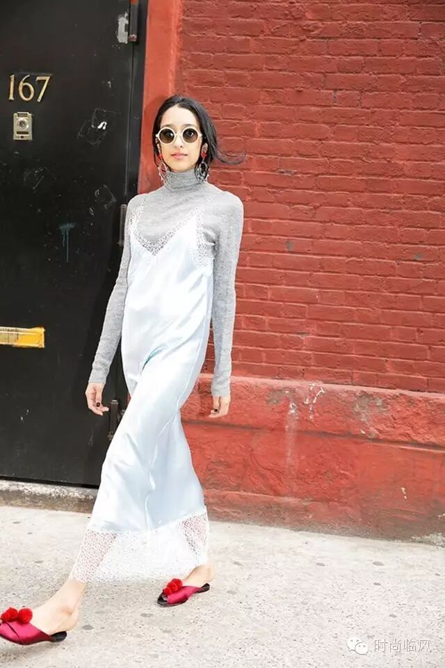 或者像时尚博主一样在吊带裙外面叠加一条裙子