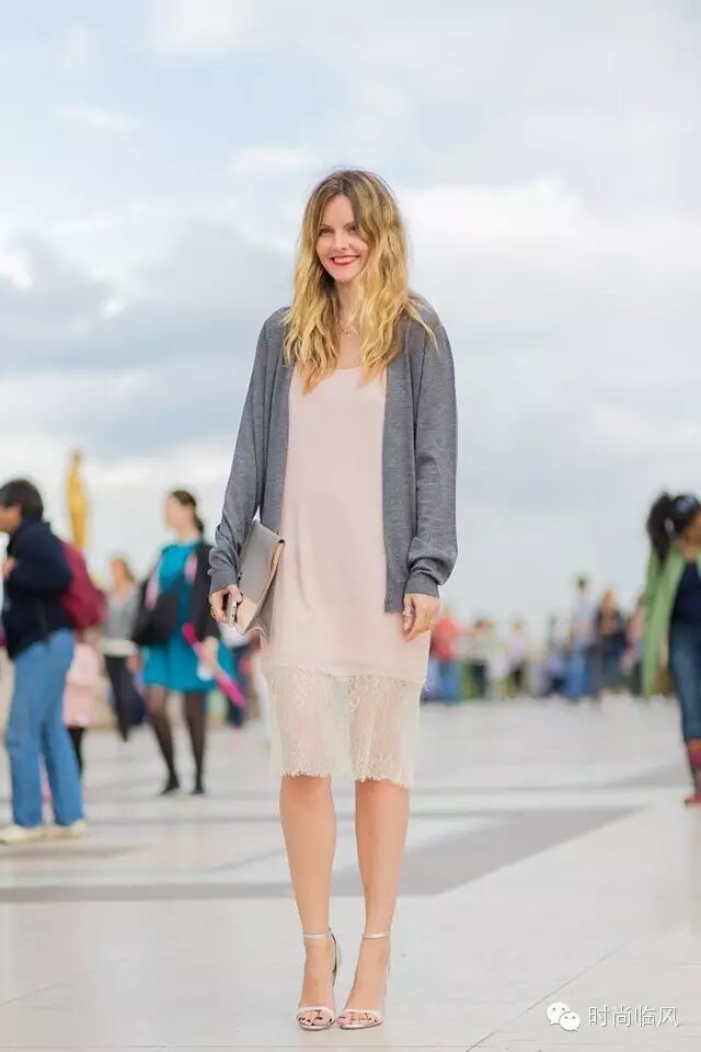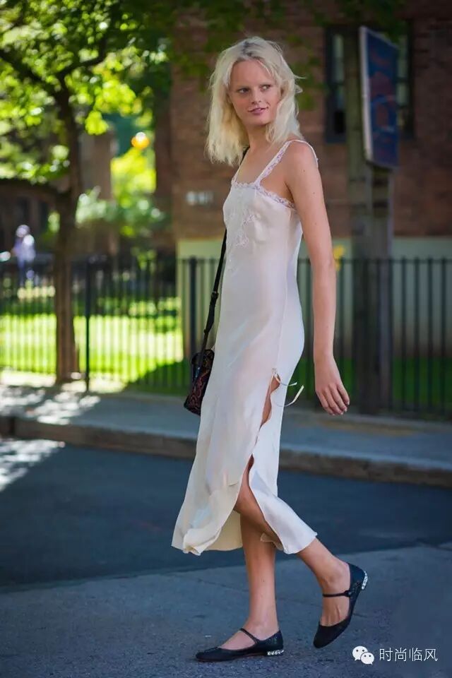 吊带裙Look比比皆是,且都穿得那么随意自然