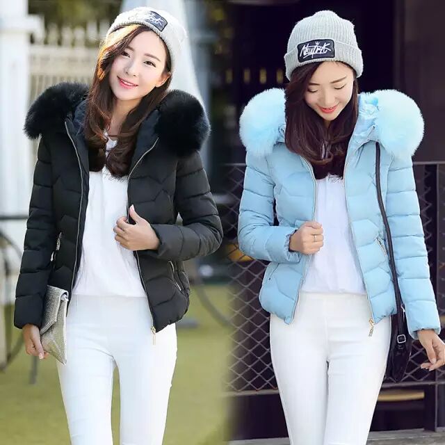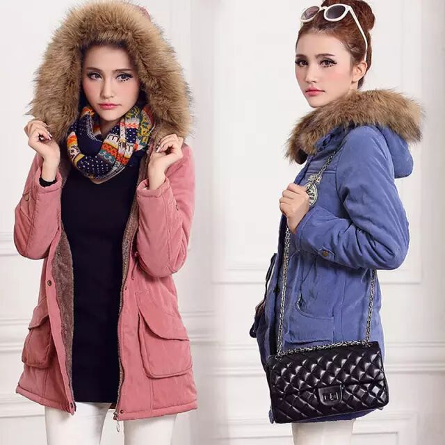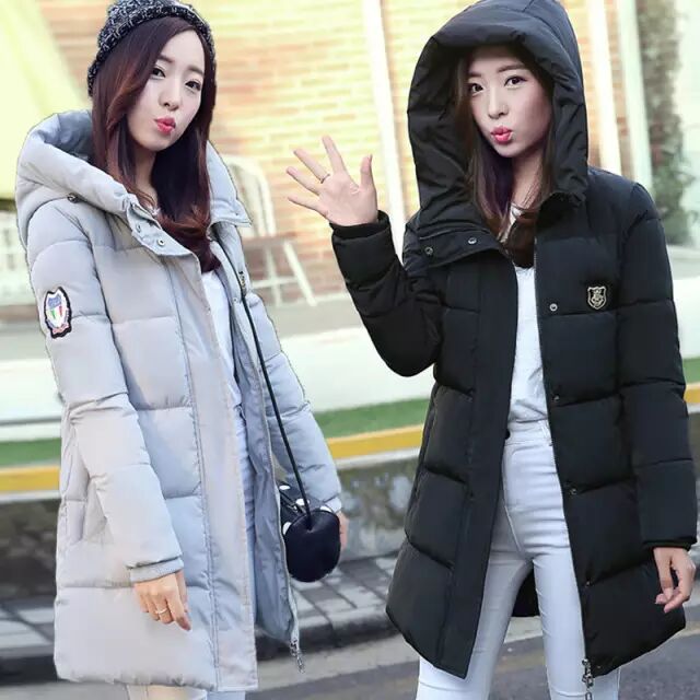 尖帽直筒棉衣布贴装饰显得动感有活力,可以搭配小脚裤+打底衫,穿运动鞋休闲随意,穿皮鞋或者靴子则女人味十足!